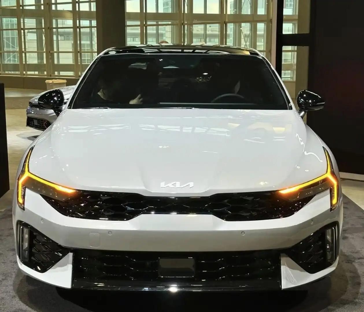 全新起亚K5实车曝光,闪电式日行灯非常显眼,但是我个人觉得这个灯的设计有点用力过