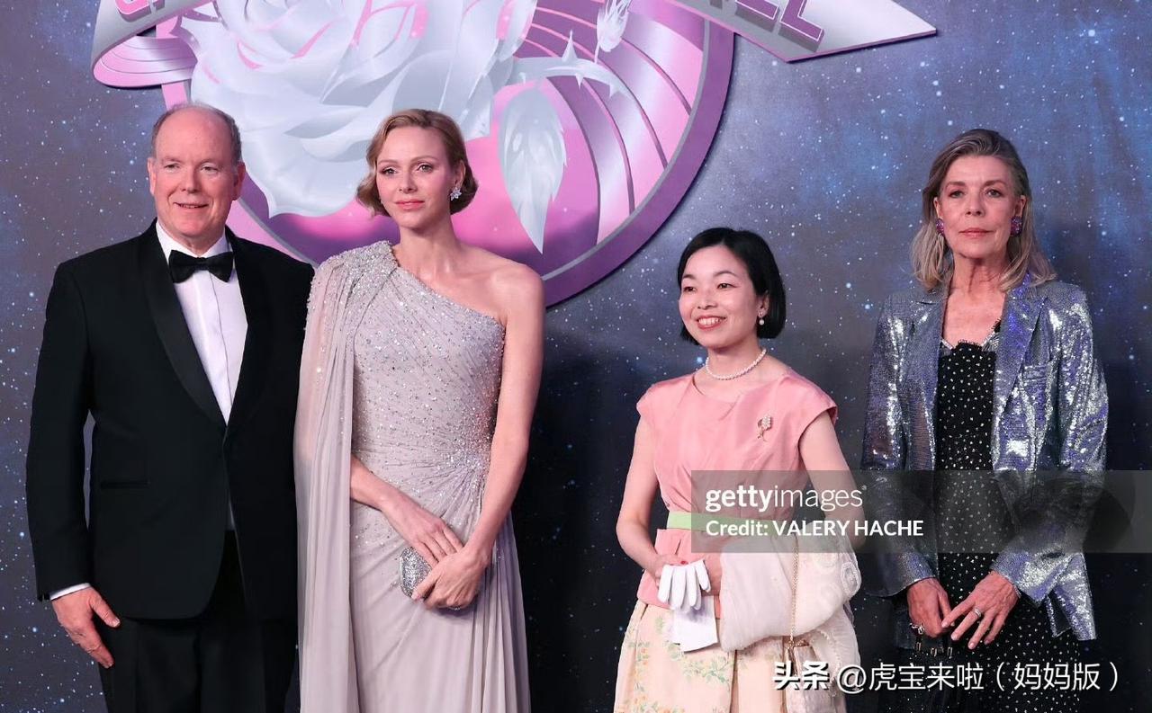 摩纳哥阿尔贝亲王和夏琳王妃夫妻俩出席第70届玫瑰舞会,日本的彬子女王也到场了,他们还同框了!夏琳王妃白到发光,状态绝佳!身着ES的露肩礼服,站在人群中耀眼夺目!