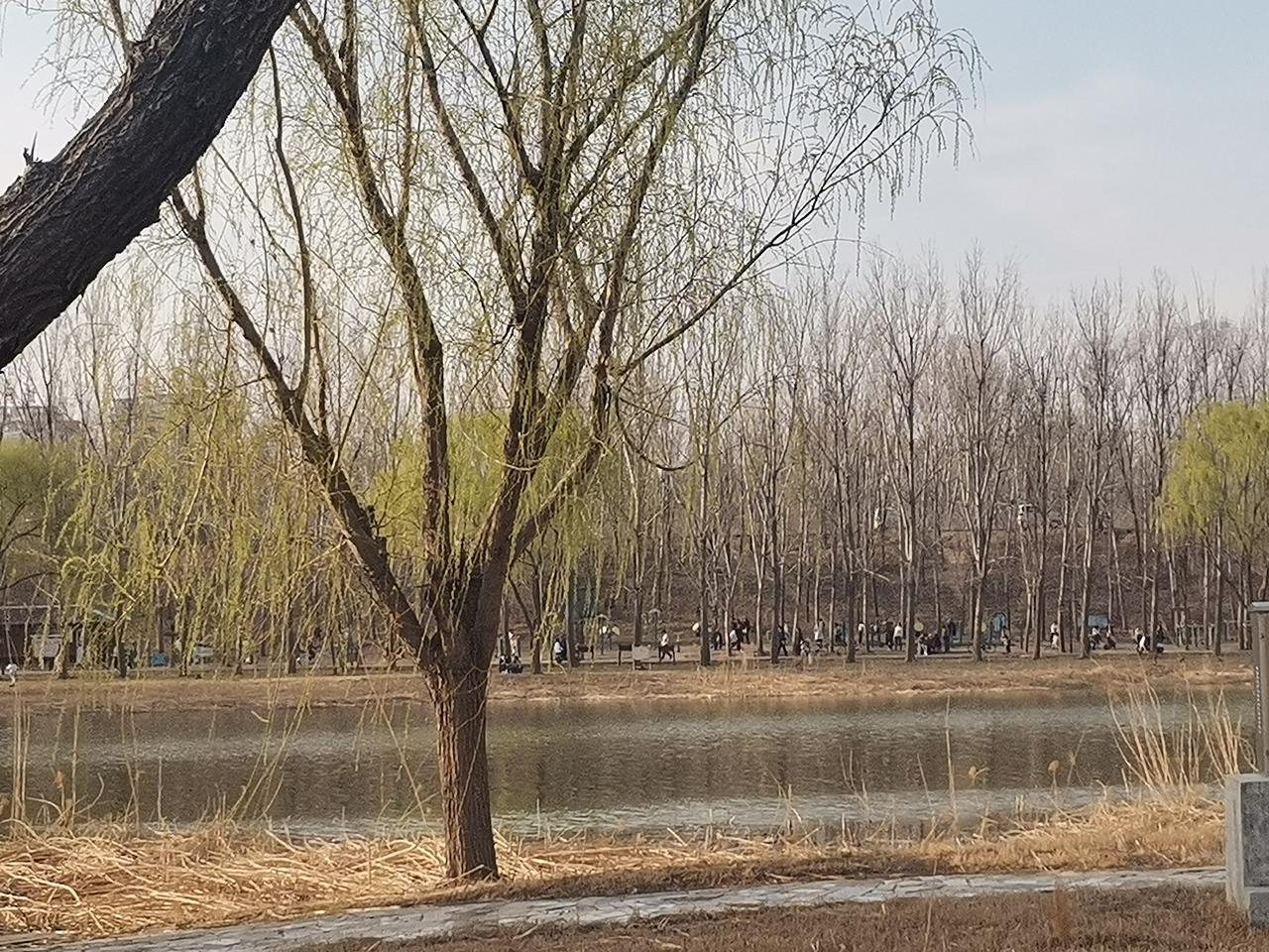 好家伙,昨天的减河两岸,到处都是人! 春日的减河,青草茵茵,绿柳如烟,春风轻拂,如醉如酥。河水清澈如镜,一群群的野鸭子在水里追逐嬉戏,不知名的大鸟轻颤着长长的翅膀掠水飞翔。 人们从四面八方奔涌而来,带着孩子,或推着轮椅上的老人,成群结队,你来我往,尽享春光的美好。有的步行而来懒洋洋地散步,有的骑着自行车缓缓而行,还有的开车拉着家人友人食桌食材,一玩就是一天。河边树下,一个个的小帐篷就像刚破土的蘑菇,树与树之间绑着五颜六色的吊床。无不彰显着春天蓬勃的生机!