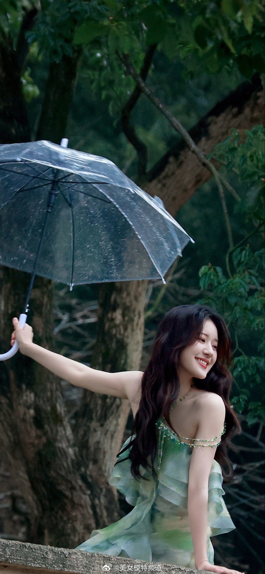 赵露思一袭绿纱裙甜美可人