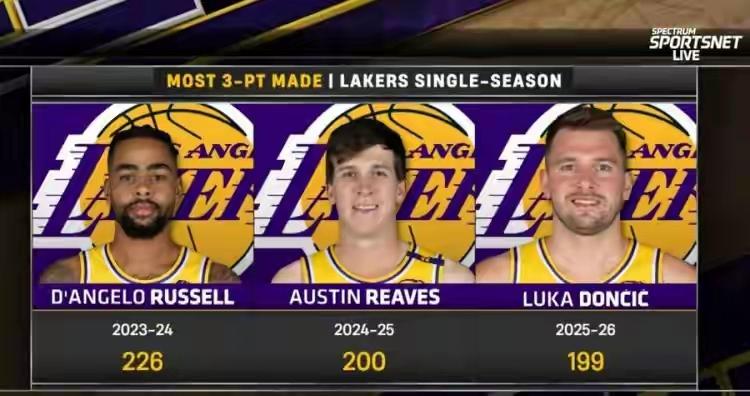 冰火两重天!东契奇vs水拉,探花郎碾压榜眼秀! 湖人对阵热火的比赛,东契奇全场三分球17投9中,本赛季三分球合计命中229记,已经打破了拉塞尔2023-2024赛季创下的湖人队史单赛季226记三分纪录。 在最新一期MVP榜单上,东契奇更是超越约基奇、文班亚马,一跃升至第二。 这位2018年探花郎,如今已是湖人绝对核心,手握3年1.653亿美元顶薪合同,年均薪资约5500万。等到2028年,他更是有望签下5年4.17亿+的超级合同,成为NBA历史薪资天花板级别的球员。 反观2015年榜眼秀拉塞尔,自从离开湖人后便四处流浪,如今只拿着2年1165万美元的迷你中产合同。被交易到奇才后更是一场未打,彻底无球可打。 同样是高顺位新秀,同样身披过紫金战袍,如今的境遇却天差地别,真正诠释了什么叫冰火两重天。