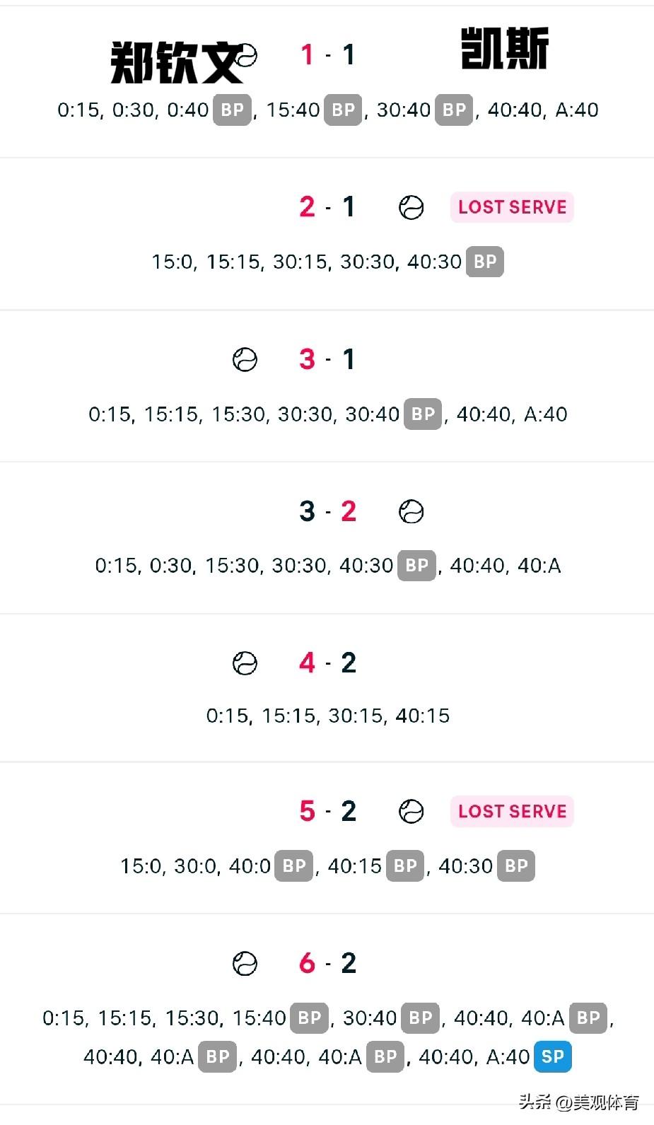 迈阿密:郑钦文三看点——2-1艰难逆转凯斯,晋级16强 看点一:郑钦文发出11记ACE球,发球火力强劲。 看点二:第二盘看似6-2轻轻松松 实际情况是,第二盘末段,郑钦文顶住凯斯疯狂反扑,在第八局挽救5个破发点兑现第二盘。 看点三:韧性十足,体力充沛,功力回血!