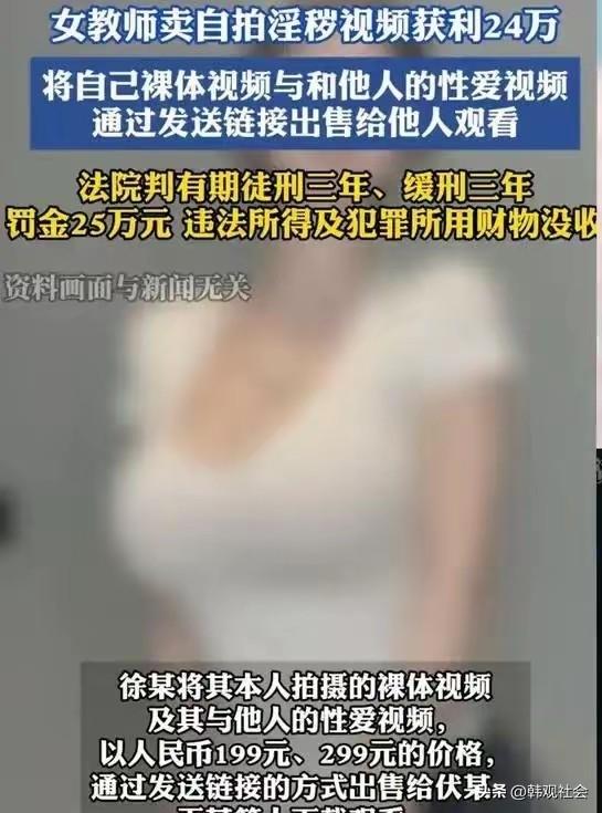 湖南祁东某职专这位28岁女老师,要身材有身材,要长相有长相,要工作有一个人人羡慕的体制内的好工作……条件这么好,就是不知道她是怎么想的? 也许她不安于挣一个死工资,想挣大钱快钱?挣钱用其他的办法呀!例如:办个课外辅导班,给学生补补课,让学生买课外教材辅导书,从中落点好处…… 然而,这么好的条件偏不走正路,竟然出卖自己的和他人的隐私视频链接,一个卖199或者299元,获利24万。 这下好了,挣了24万,罚了25万,还被判三缓三。算一算:虽然侥幸免除了实刑,本来想挣钱,最后在经济上却亏损了一万。关键是还丢了体制内的好工作,还在全国出名了……