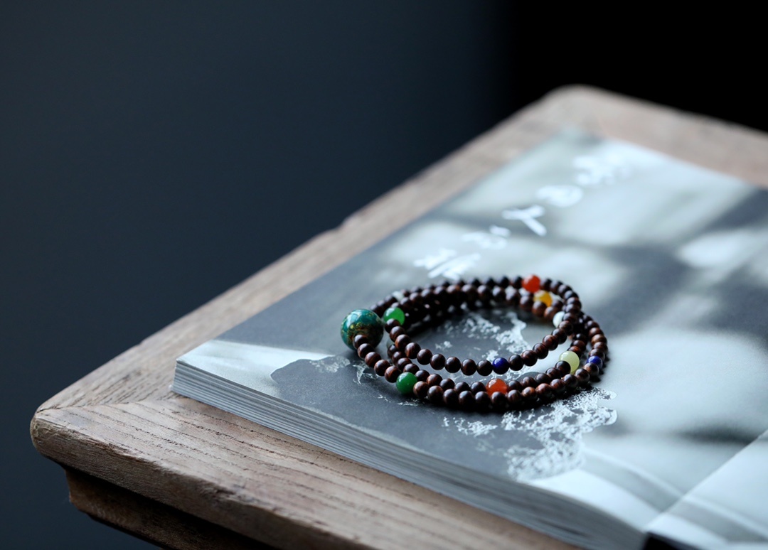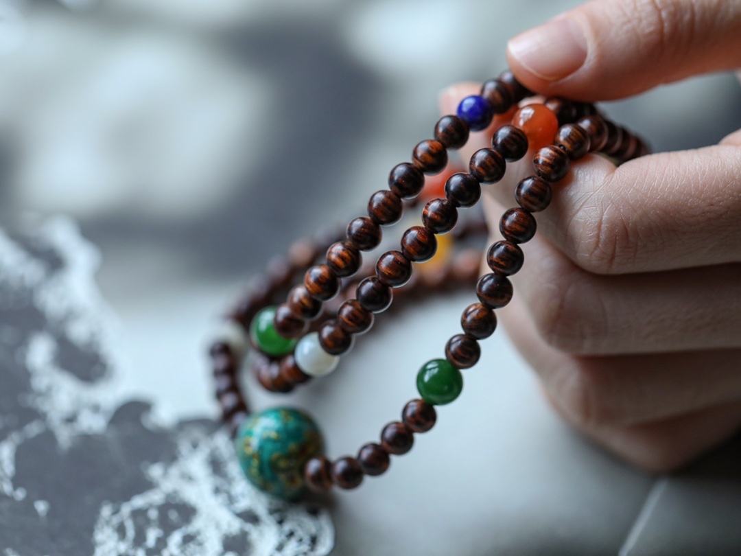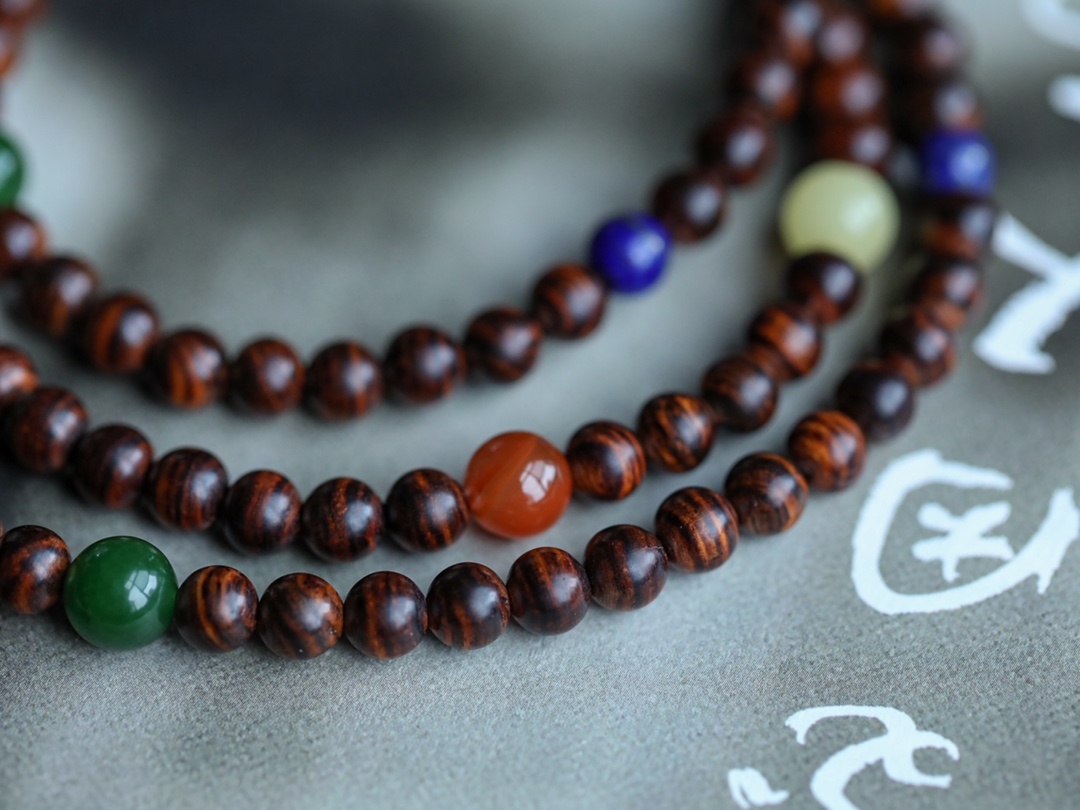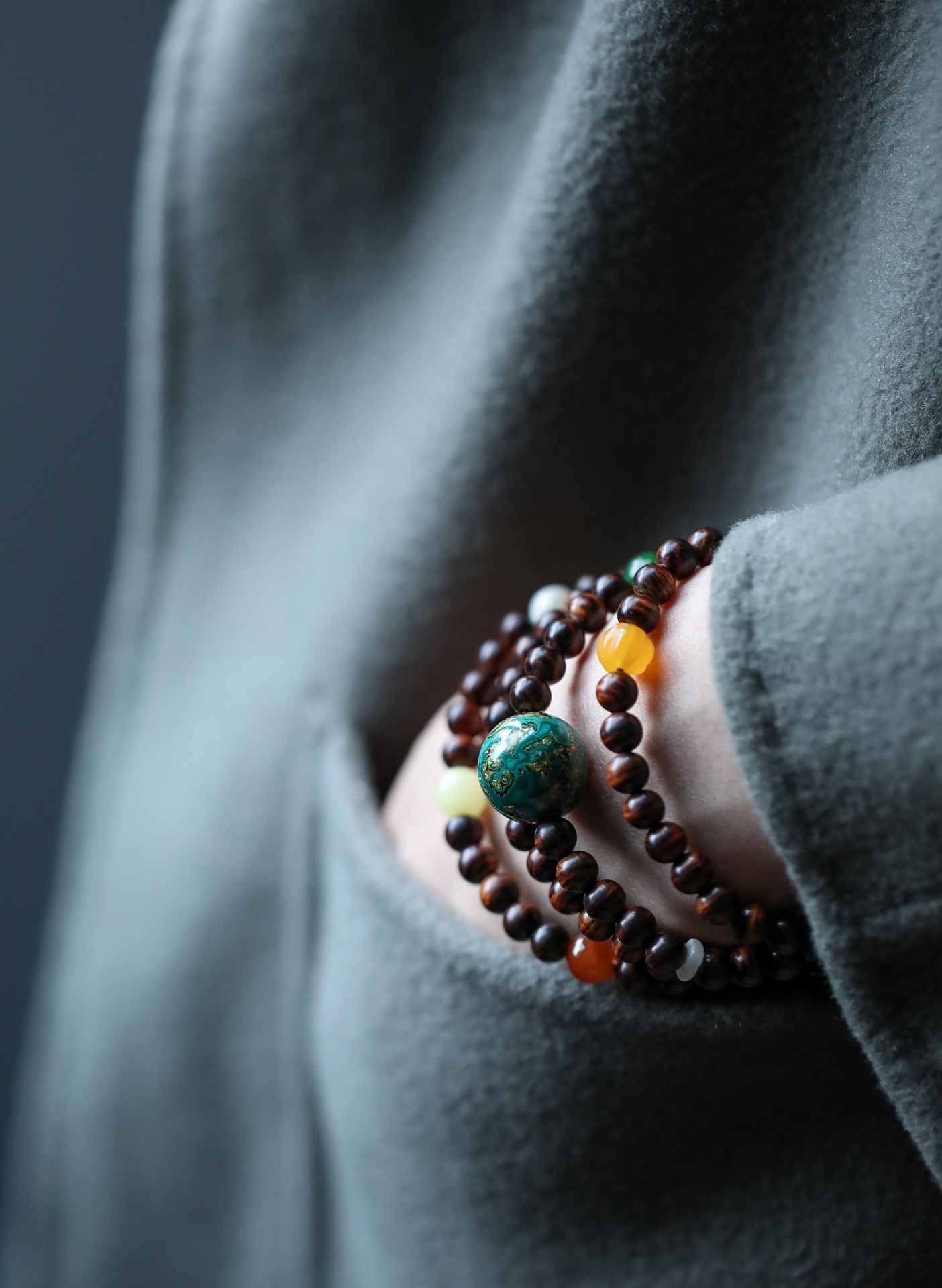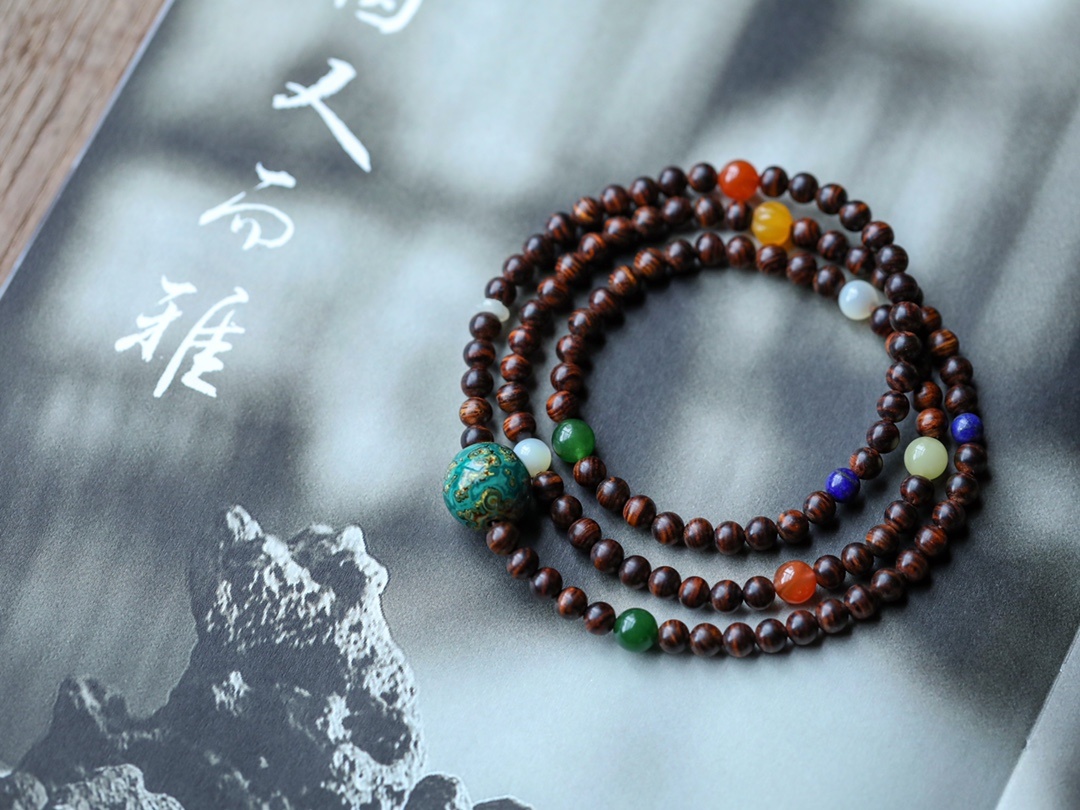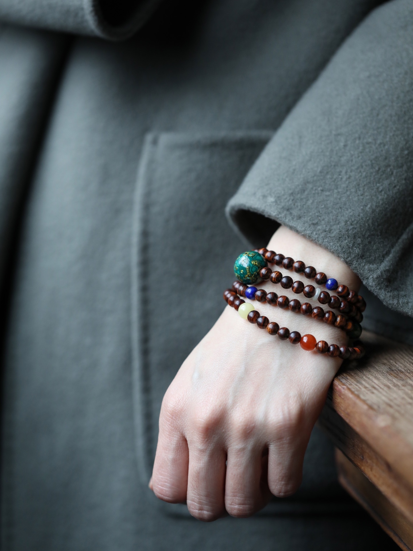 海黄 原创珠艺『子衿 』手串海黄6mm108颗配以多宝:大漆珠,玛瑙,青金石,蜜
