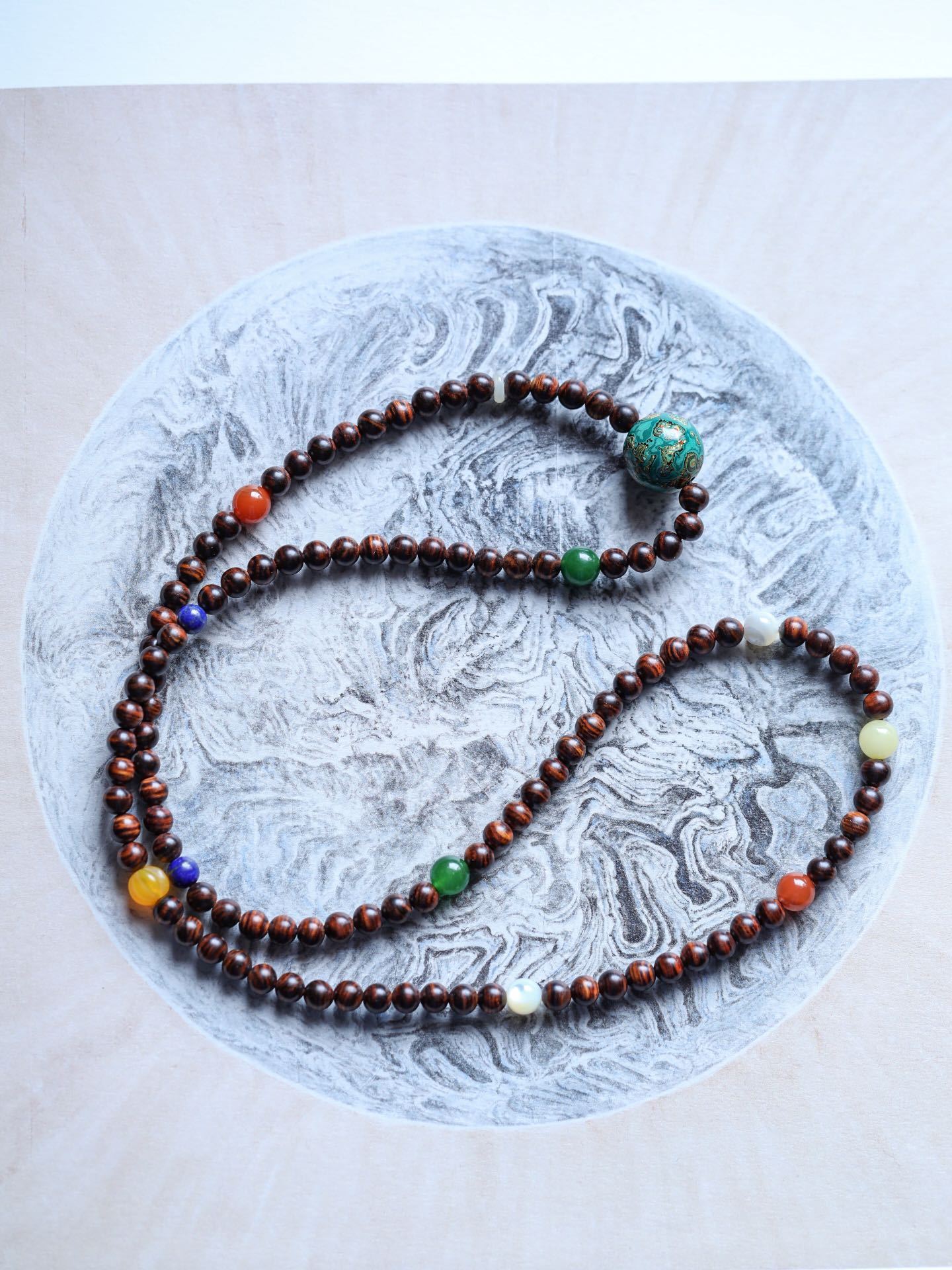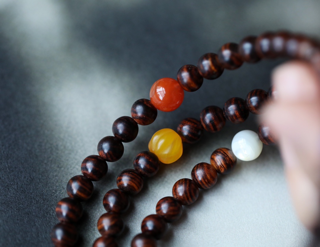 海黄6mm108颗配以多宝:大漆珠,玛瑙,青金石,蜜蜡,南红,车渠,玉髓,牛骨隔片,实力诠释五彩缤纷。 海黄 原创珠艺『子衿 』手串