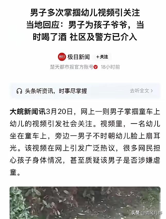 河南郑州,一男子推着婴儿车在一小区里休息,趁着四下无人,男子竟掌掴婴儿,推车里的幼儿被男子一会打左脸,一会打右脸,孩子被男子打的哇哇大哭。后来有路人看见了,悄悄将这一幕记录了下来,但是尚未有人敢上去跟这位男子理论。实在不清楚这位男子打婴儿的意欲何为。 视频在网上发酵后,大家才知道,这个对着幼童下狠手的男子,竟是孩子的亲爷爷。 当天他喝了不少酒,酒精冲昏了头脑,平日里对孩子的疼惜全被冲散,只剩下失控的暴戾。 他对着推车里毫无反抗能力的孩子,一下又一下扇过去,孩子的哭声裹着风飘出去,路过的人听见了,却只敢远远站着,掏出手机记录,没人敢上前阻拦——谁也不知道醉酒的人会做出什么更极端的事,只能盼着有人能早点发现,早点制止。 视频传开的当天下午,社区和警方就赶到了现场。他们找到孩子的家人,第一时间给孩子做了检查,万幸的是,孩子身上没有明显外伤,只是受了惊吓,哭累了之后慢慢平复下来。 孩子的妈妈红着眼眶说,平常爷爷对孩子挺好的,只是这次喝了酒,才犯了糊涂。她和孩子的父亲商量后,向社区和警方提出不立案,想在家里自己解决这件事,毕竟是一家人,闹到法庭上,对孩子也没好处。 孩子的父亲正在外地赶回来的路上,接到消息时,他整个人都懵了。他不敢相信,平日里最疼孩子的父亲,会对自己的孙辈做出这种事。 他一边往家赶,一边在电话里反复叮嘱妻子,一定要看好孩子,别让爷爷再靠近孩子,等他回去再好好谈。社区的工作人员也留了下来,反复跟家人强调,不管有什么矛盾,都不能拿孩子撒气,后续会持续跟进,确保孩子能在安全的环境里生活。 这件事在网上炸开了锅。有人骂爷爷不配当长辈,酒精上头就拿孩子撒气,根本不配拥有亲情;有人心疼孩子,那么小就要承受这种暴力,哪怕是亲爷爷,也不能原谅;还有人不理解孩子父母的选择,觉得不立案就是纵容,以后还会有更严重的事发生。 可没人能真正站在这个家庭的立场上,去体会他们的两难——一边是犯错的父亲,一边是年幼的孩子,一边是法律的底线,一边是亲情的牵绊,每一个选择都带着锥心的疼。 我们总说“隔代亲”,可这份亲,从来都不该是失控的借口。 酒精能让人暂时失去理智,却不能成为伤害孩子的理由。哪怕是最亲近的家人,也没有权利对孩子动手,更不能把自己的负面情绪,发泄在毫无反抗能力的孩子身上。孩子不是大人的情绪垃圾桶,更不是家庭矛盾的牺牲品,他们需要的是温柔的呵护,而不是突如其来的暴力。 这件事也撕开了家庭里最隐秘的一角。很多时候,我们总以为暴力只会发生在陌生人和陌生人之间,却忘了,孩子也可能成为暴力的受害者,哪怕施暴者是最亲的长辈。 法律的底线摆在那里,可亲情的牵绊却常常让人们选择妥协,可妥协的背后,是孩子可能再次受到伤害的风险。我们不能苛责孩子父母的选择,却也忍不住要问,当亲情和保护孩子的责任碰撞时,我们到底该怎么守住底线? 万幸的是,孩子没有受伤,社区和警方也介入了,至少暂时给了孩子一个安全的保障。 可这件事留下的阴影,却不会轻易散去。孩子可能会在夜里惊醒,会害怕陌生的成年男子,会对“爷爷”这个称呼产生恐惧。而那个醉酒后失控的爷爷,也该好好想想,自己的一时冲动,到底给孩子、给这个家,带来了多大的伤害。 我们总在说要保护孩子,可保护从来都不只是一句口号。它需要每个成年人都守住自己的底线,需要每个家庭都给孩子足够的安全感,更需要社会能给受害者更多的支持和选择。哪怕是最亲近的家人,也不能成为伤害孩子的理由,这是我们每个人都该守住的共识。 各位读者你们怎么看?欢迎在评论区讨论。