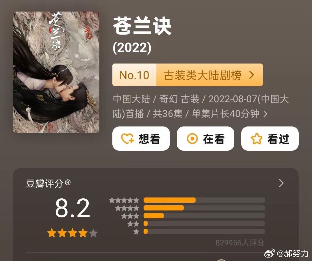 《逐玉》热度超过了《苍兰诀》来到了第四的位置,目前《逐玉》豆瓣还没有开分,而《苍兰诀》豆瓣口碑高达8.2分。个人觉得,《逐玉》不太可能会在口碑上超《苍兰诀》,最终差不多能有个7分左右。既然两部剧同时被推上热搜,有人就提出了疑问,《逐玉》和《苍兰诀》到底哪部更火?