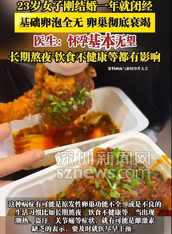 万万没想到!陕西西安,一名23岁女子结婚一年,想着趁年轻身体好要个孩子,不料孩子没怀上,反倒是月经先不来了。一停就是一年,到医院一检查,医生告知了一个不好的消息:基础卵泡都没有,想怀孕几乎不可能了 这一年里,她不是没折腾。中药一碗一碗地灌,针灸一针一针地扎,各种调理的办法试了个遍,肚子没动静,月经也没回来。最后实在没办法,只能去医院做个彻底检查 婆婆天天在耳边念叨,说邻居家同龄媳妇都抱娃了,话里话外透着不满。 她心里又委屈又着急,明明自己没少受罪,可身体就是不给力,夜里常躲在被子里哭。 老公嘴上说不怪她,可眼神里的失落藏不住,两人说话都少了往日的热络。 有人劝她做试管,可医生说没有基础卵泡,试管也无从下手,这条路直接被堵死。 娘家妈偷偷抹泪,让她别太拼,身体要紧,可她看着空荡荡的婚房,怎么能甘心。 更让她纠结的是,身边人总说“年轻就该早点生”,这话像针一样扎在她心上。 她开始怀疑是不是之前调理过度伤了身体,又怕就此放弃会留下一辈子遗憾,进退两难。 日子一天天过,她还在跑医院、查资料,哪怕只有一丝希望,也不想轻易放手。