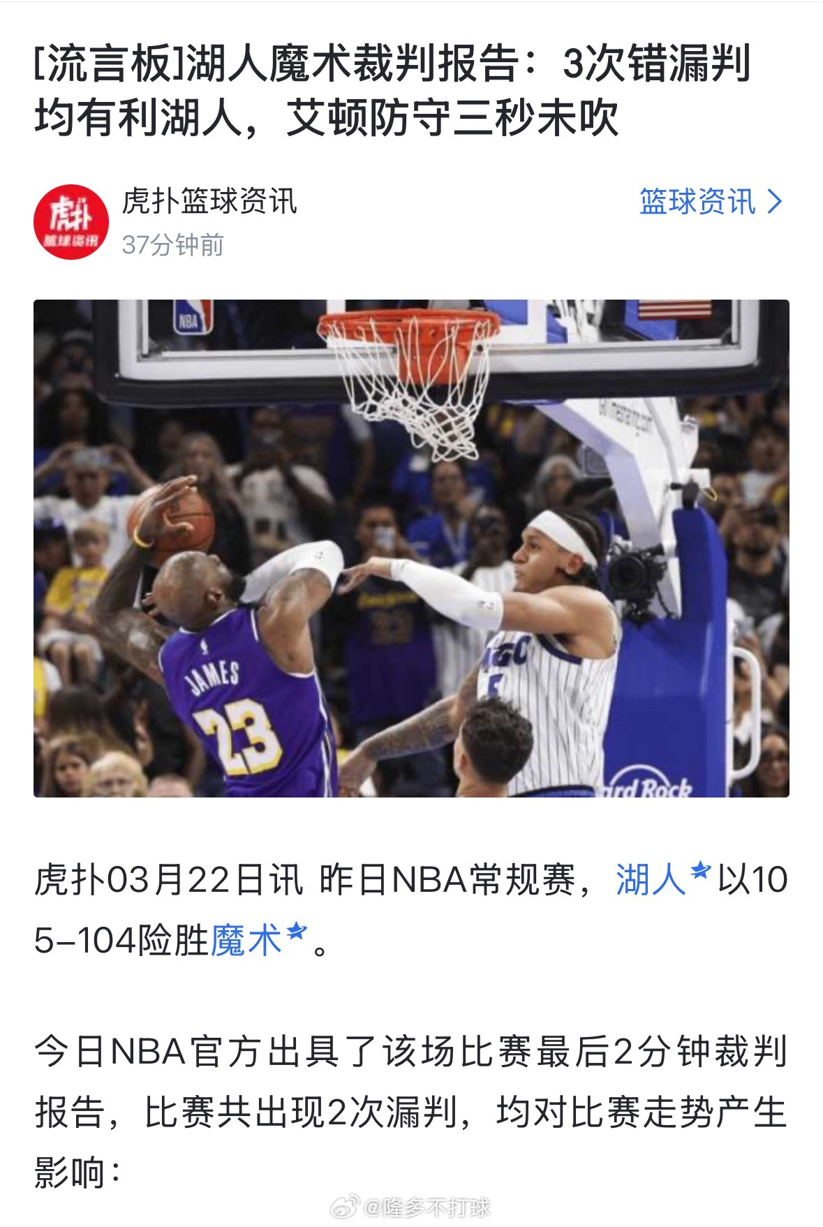 昨天的湖人魔术的裁判报告出来了,印象中湖人是真没吃过这方面的亏。很多人不知道,连