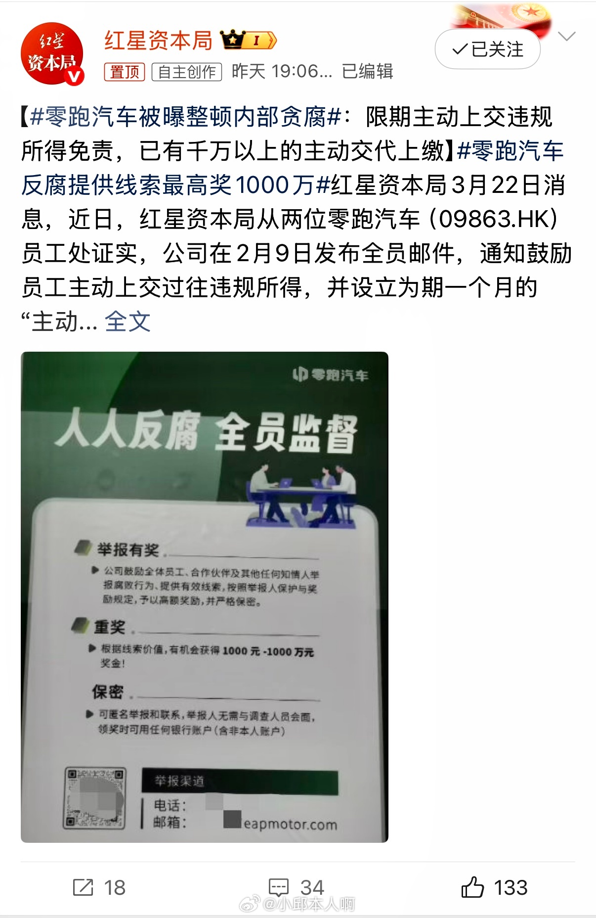 零跑汽车被曝整顿内部贪腐零跑反腐:主动退钱不追究,藏私房钱罚到底,零跑这次反腐玩真的!先是给了一个月“后悔药”,只要主动把以前贪的钱交出来,就当没发生过,工作照旧。结果窗口期一关,已经有人吓得赶紧上交了上千万赃款。