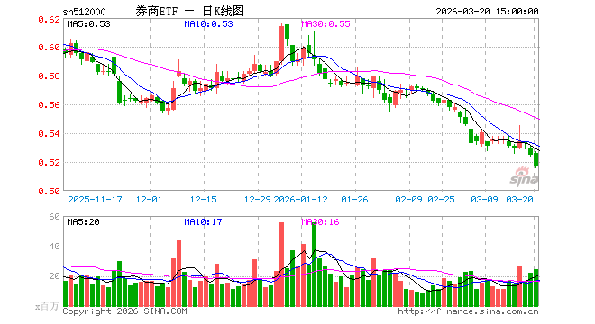 3月20日,券商ETF(512000)跌1.52%,成交额12.69亿元。当日份额增加5160.00万份,最新份额为716.38亿份,近20个交易日份额增加22.74亿份。最新资产净值计算值为369.94亿元。