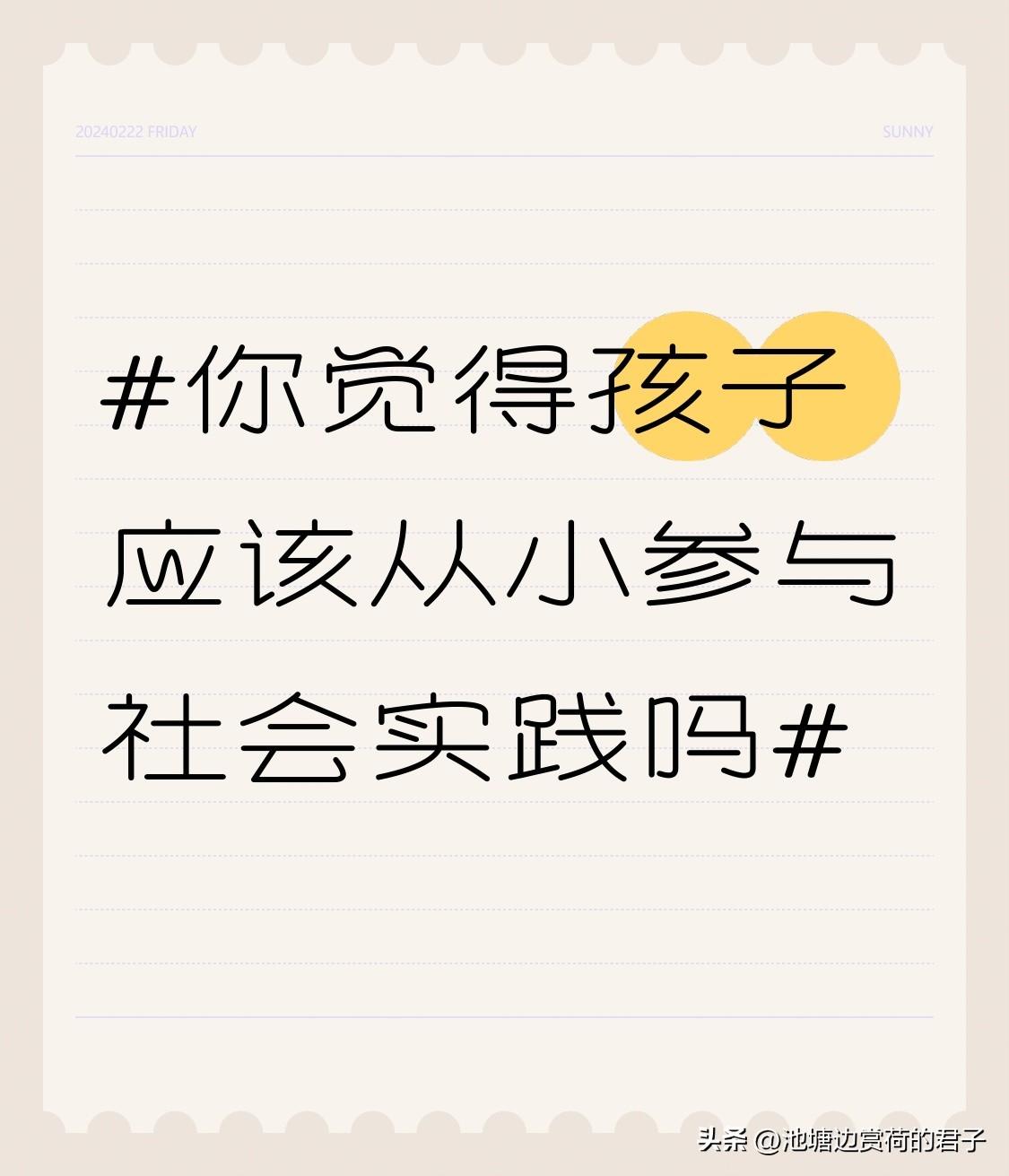 你觉得孩子应该从小参与社会实践吗 孩子从小参与社会实践太有必要了。就拿我邻居家小孩来说,小学时参加了社区垃圾分类宣传活动。他不仅了解了环保知识,还锻炼了沟通能力。以前他见人就害羞,活动后变得开朗大方,主动和别人交流。 社会实践能让孩子接触社会,明白生活不易。比如让孩子去卖报纸,体验赚钱的艰辛,他们才会珍惜父母的劳动成果。而且在实践中遇到问题,孩子会想办法解决,提升解决问题的能力。所以,从小让孩子参与社会实践,对他们的成长益处多多。