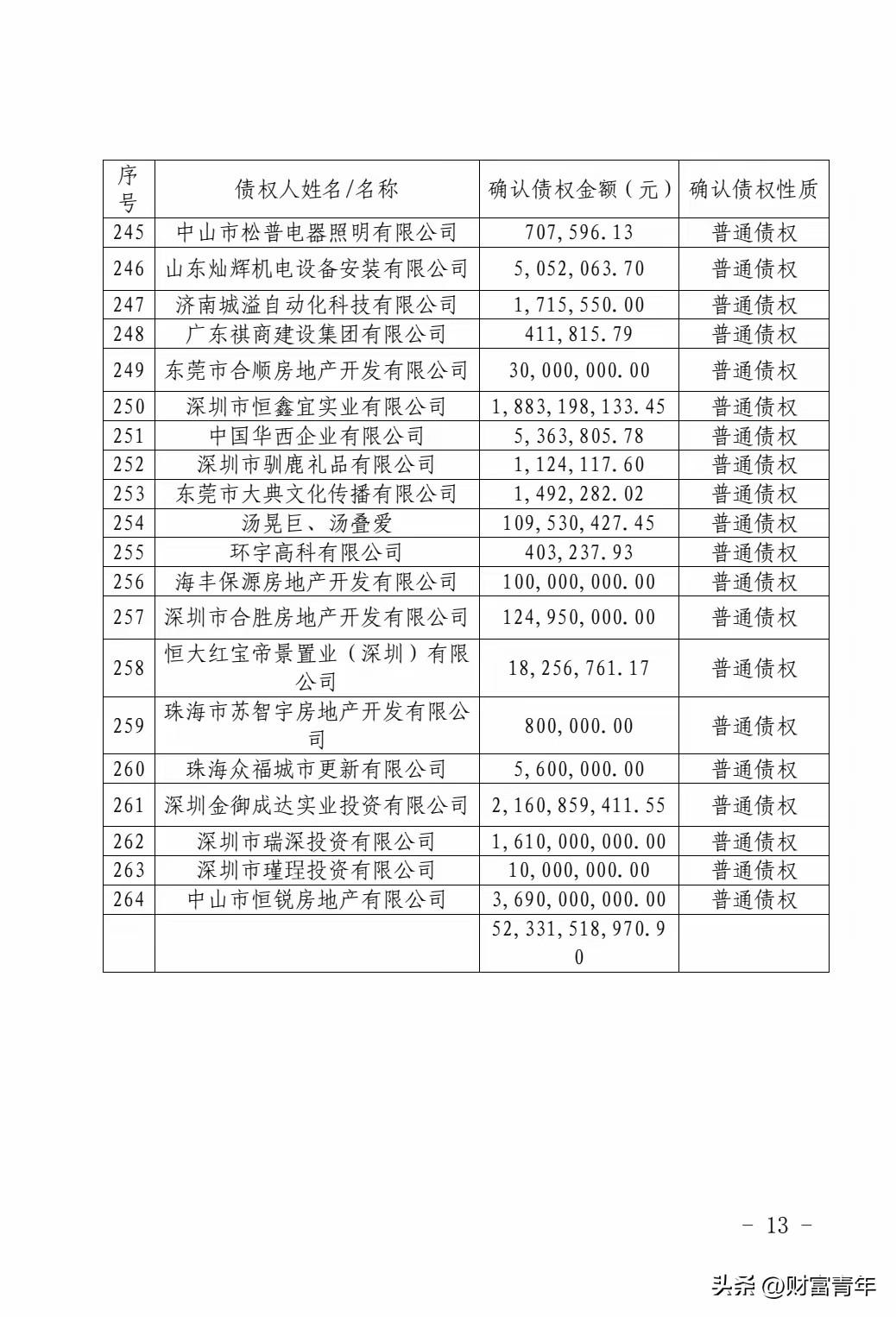 不会吧,深圳恒大地产被破产了?!?500亿债务,估计要找谁?! 看名单,很多债务