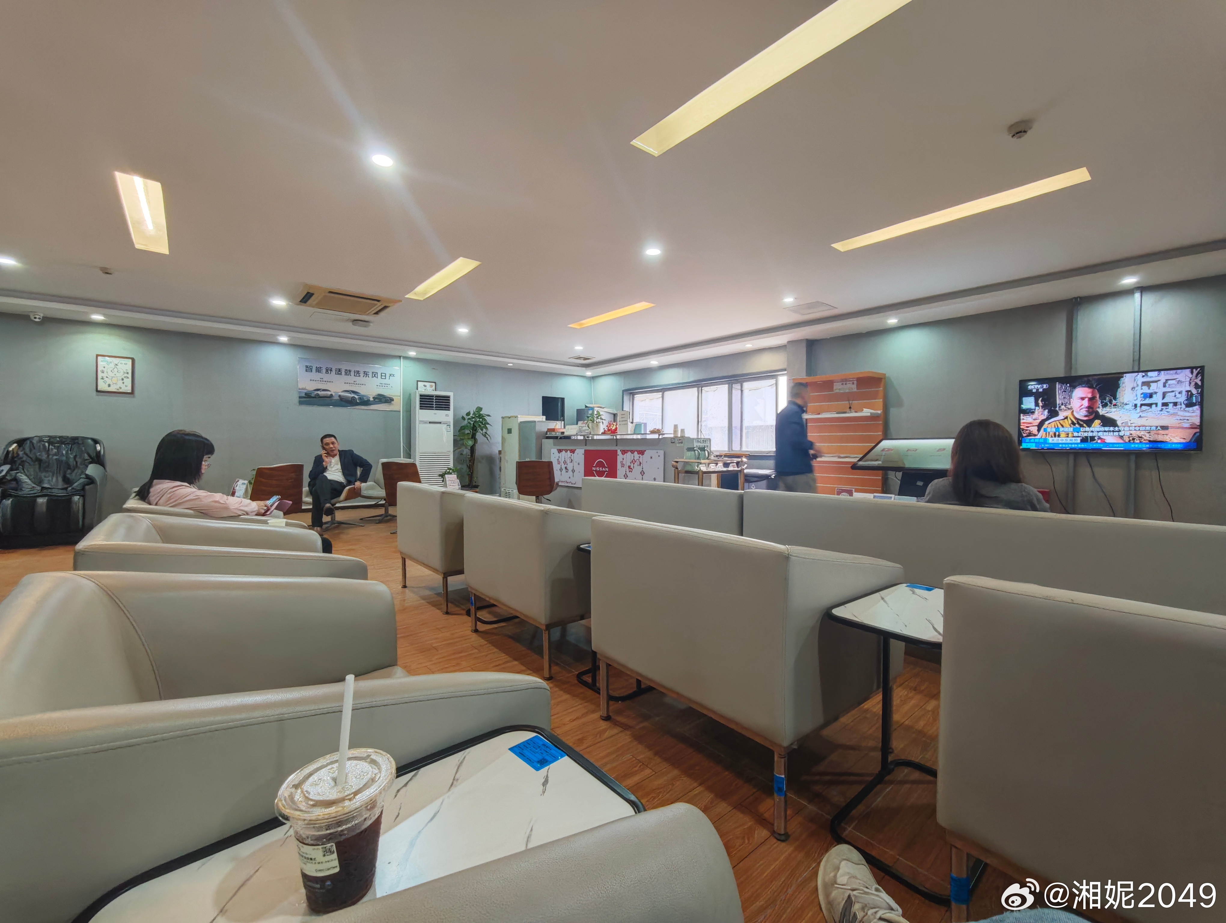 早起干完活立马就来日产店升级N6的车钥匙,我以为我已经来的很早了,没想到休息区已经有四五个客户了。有一说一这个休息室环境还不错,有大电视看还有吧台,茶、咖啡、奶茶都有~