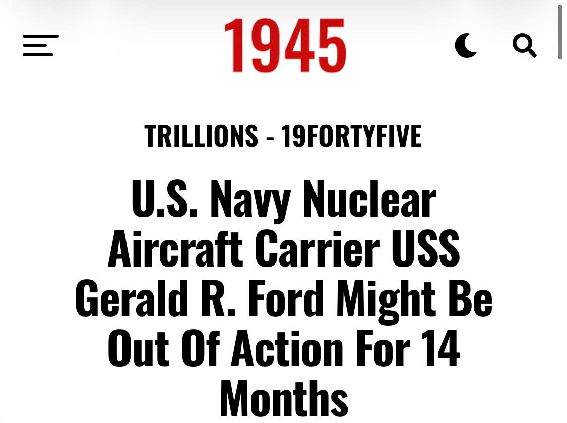 美媒对福特号(CVN-78)后续需维修14个月的预计过于乐观了,此前布什号(CVN-77)为了修厕所进行了28个月的大修,福特号短于这个时间的可能性很小。热点观点美国航母动态伊朗提出4项措施回应特朗普威胁