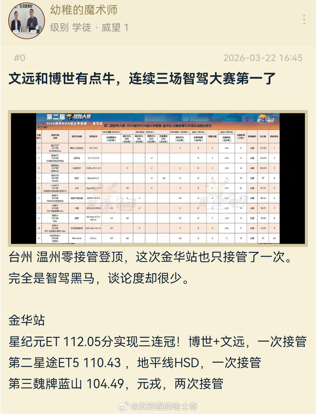 智驾大赛文远第一,博世第二,Momenta倒数第一,华为ADS倒数第二有点出乎意料,华子不会给钱了吧?居然不是倒数第一