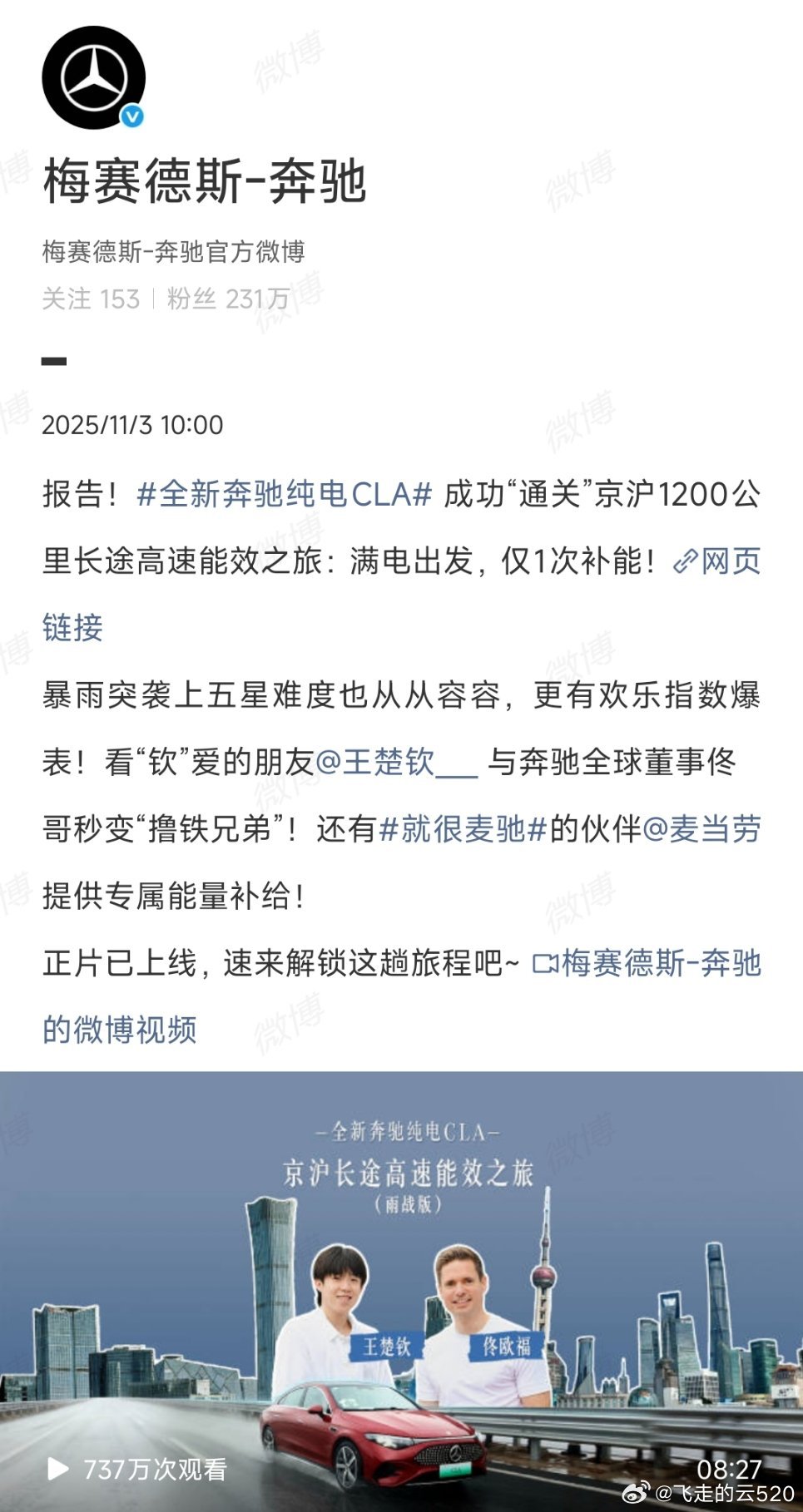 奔驰CLA300L热度太低了,京沪中途只充一次电,还是路遇暴雨的恶劣工况,大家都不知道