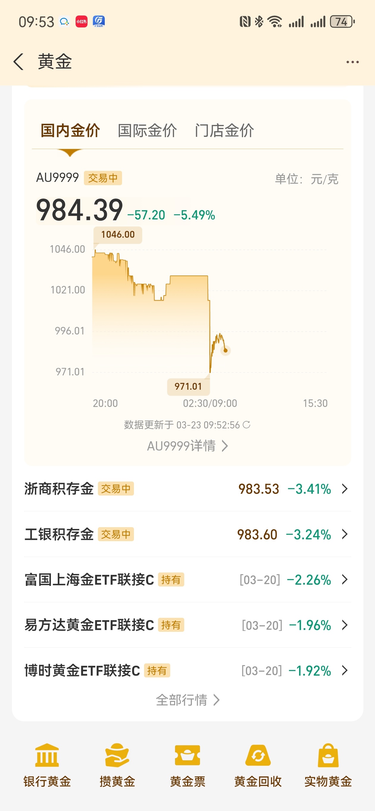 看到A股绿油油,再看看黄金。。。这下子可以放心了,上次补的那些,就当做存储吧。。