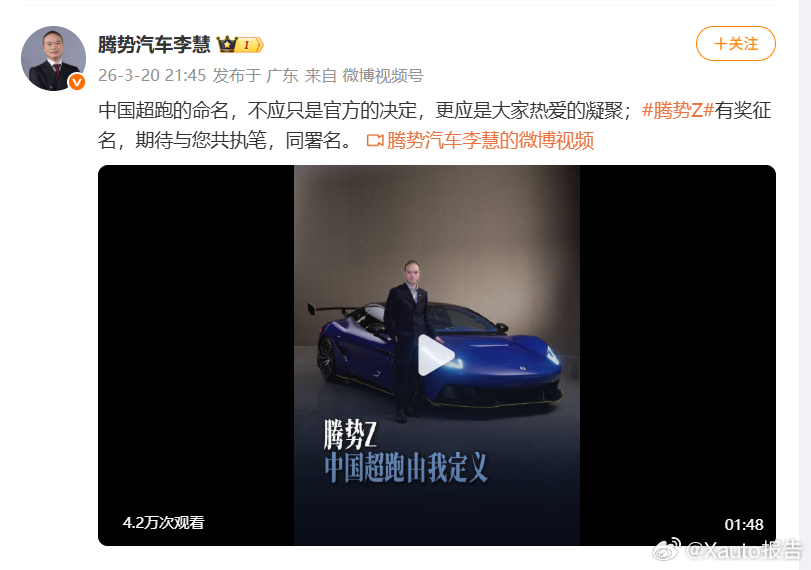 腾势Z超跑开启全网征名