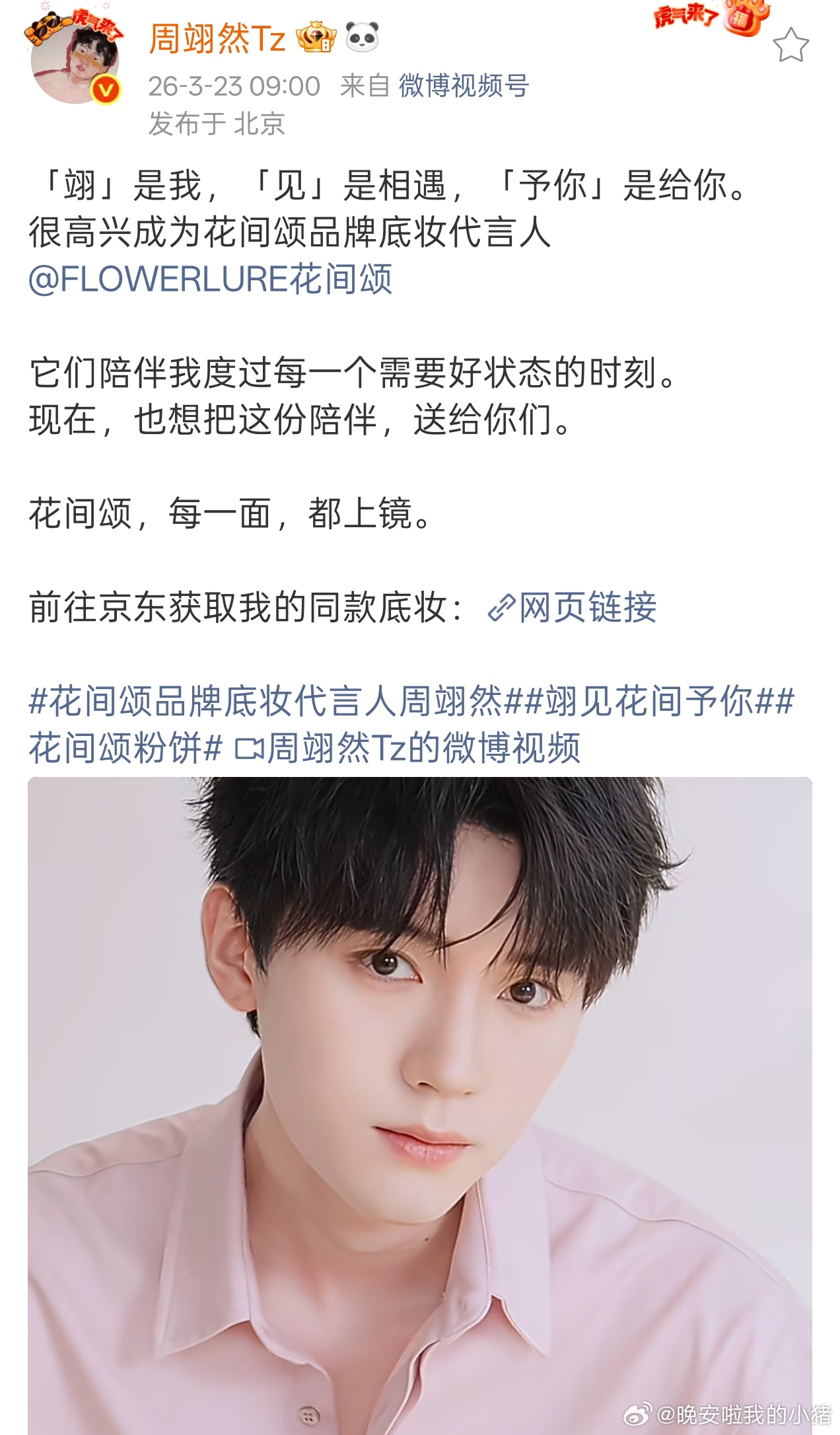周翊然花间颂底妆代言人正式官宣