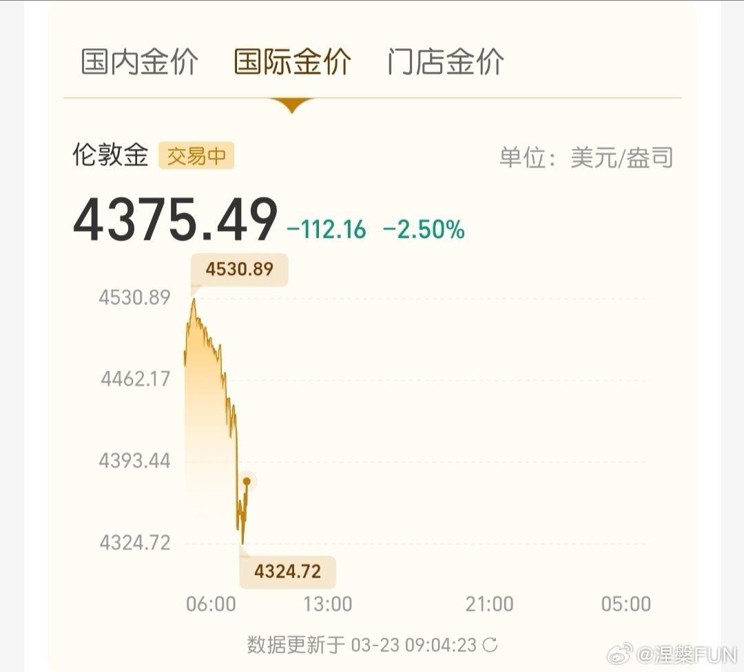 黄金白银开涨了不对不对, 国内国外金价开盘后就持续在大跌,简直是灾难,断崖式下跌