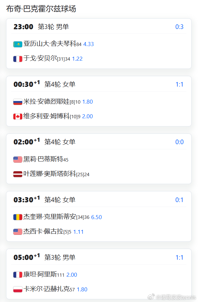 安德烈耶娃 VS 姆博科[10] 不早于 凌晨 0:30