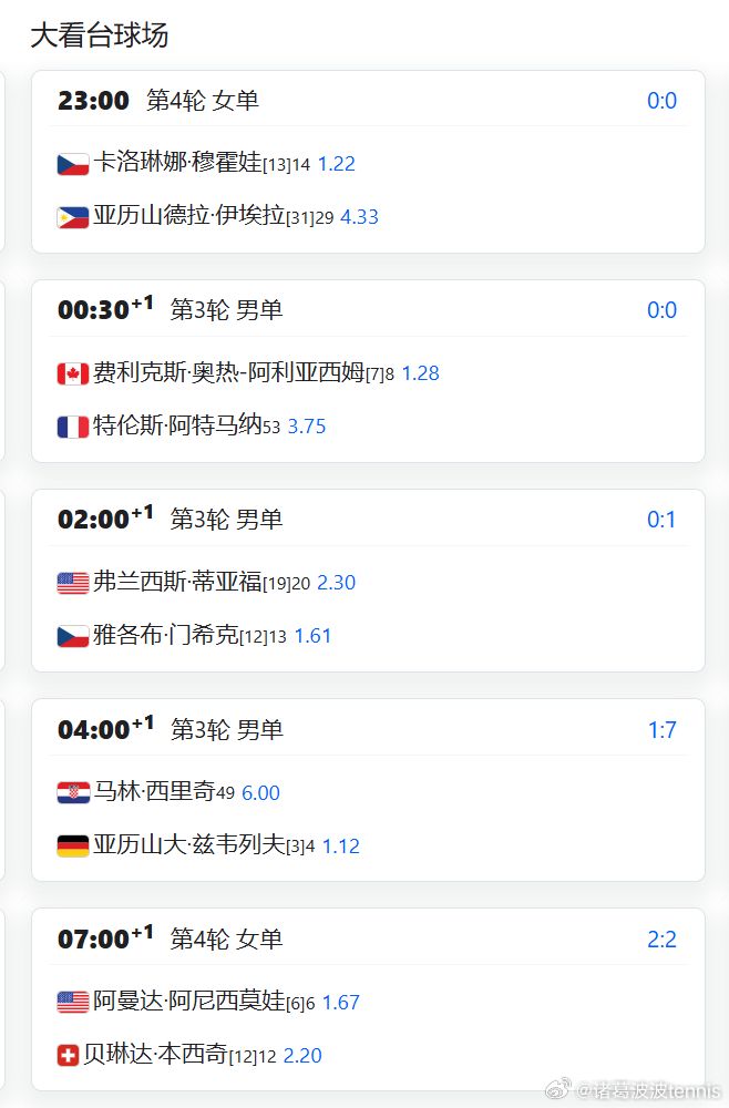 辛纳 VS 穆泰 早上 7:00