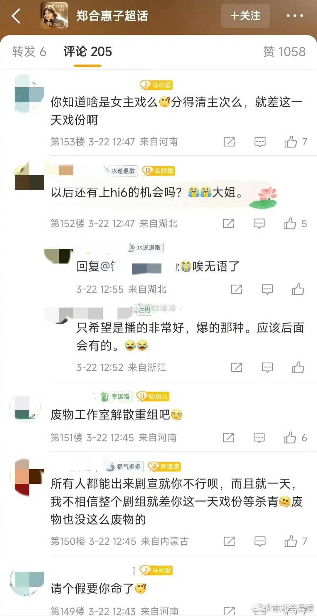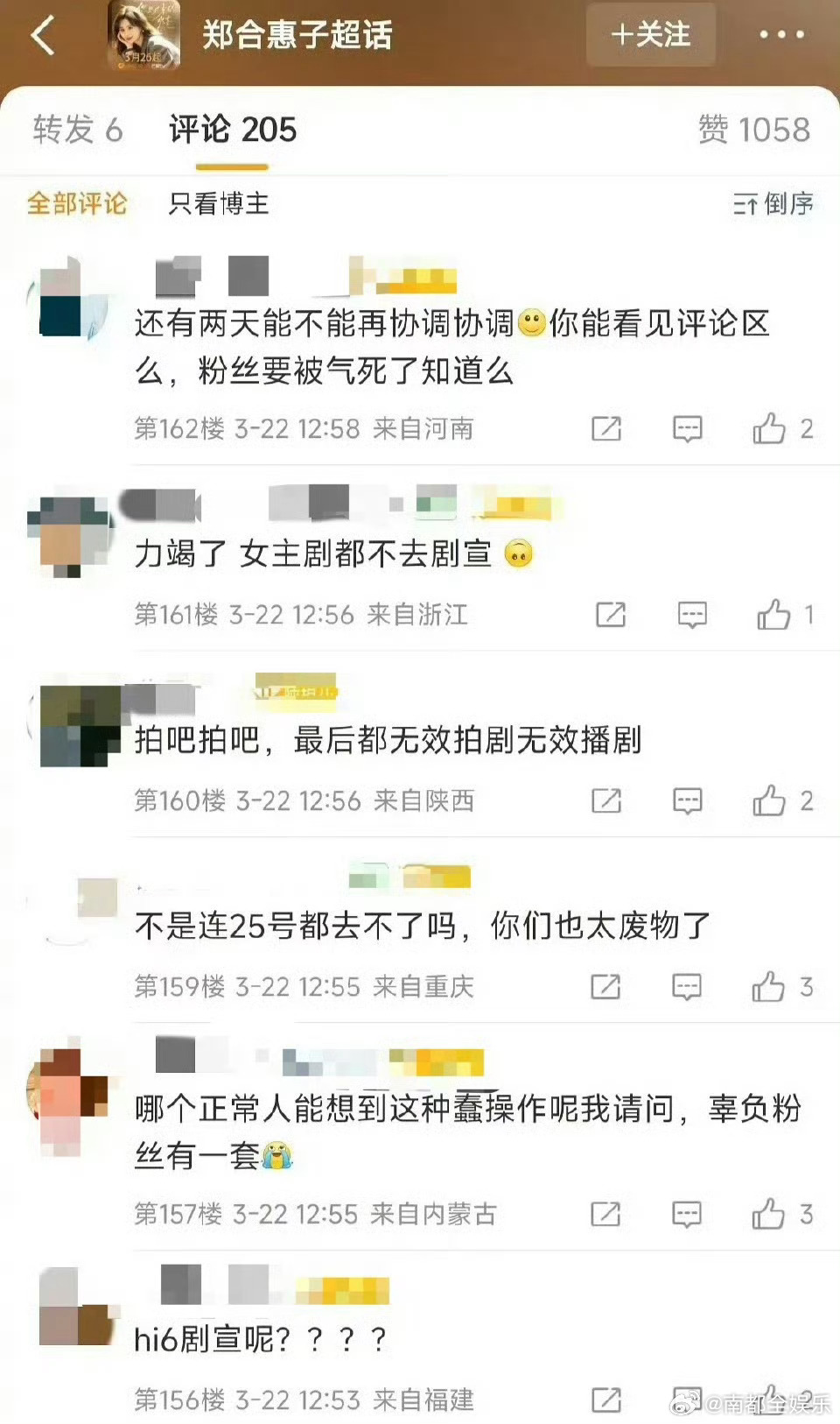郑合惠子在拍戏放弃去hi6女主剧宣近日,郑合惠子因正在拍摄《将门独后》,档期冲突,缺席了自己作为女主的新剧《你是迟来的欢喜》在hi6的宣传。此事引发粉丝讨论,认为团队没有协调好关键的曝光机会,你怎么看🤔?