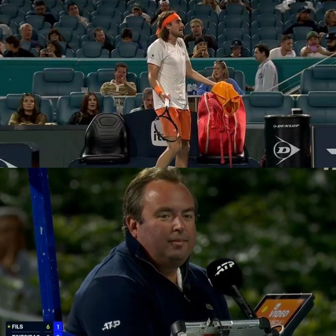 西西帕斯对主裁抱怨灯光不行,“我根本看不清球,我不知道他是怎么看到的。。。”