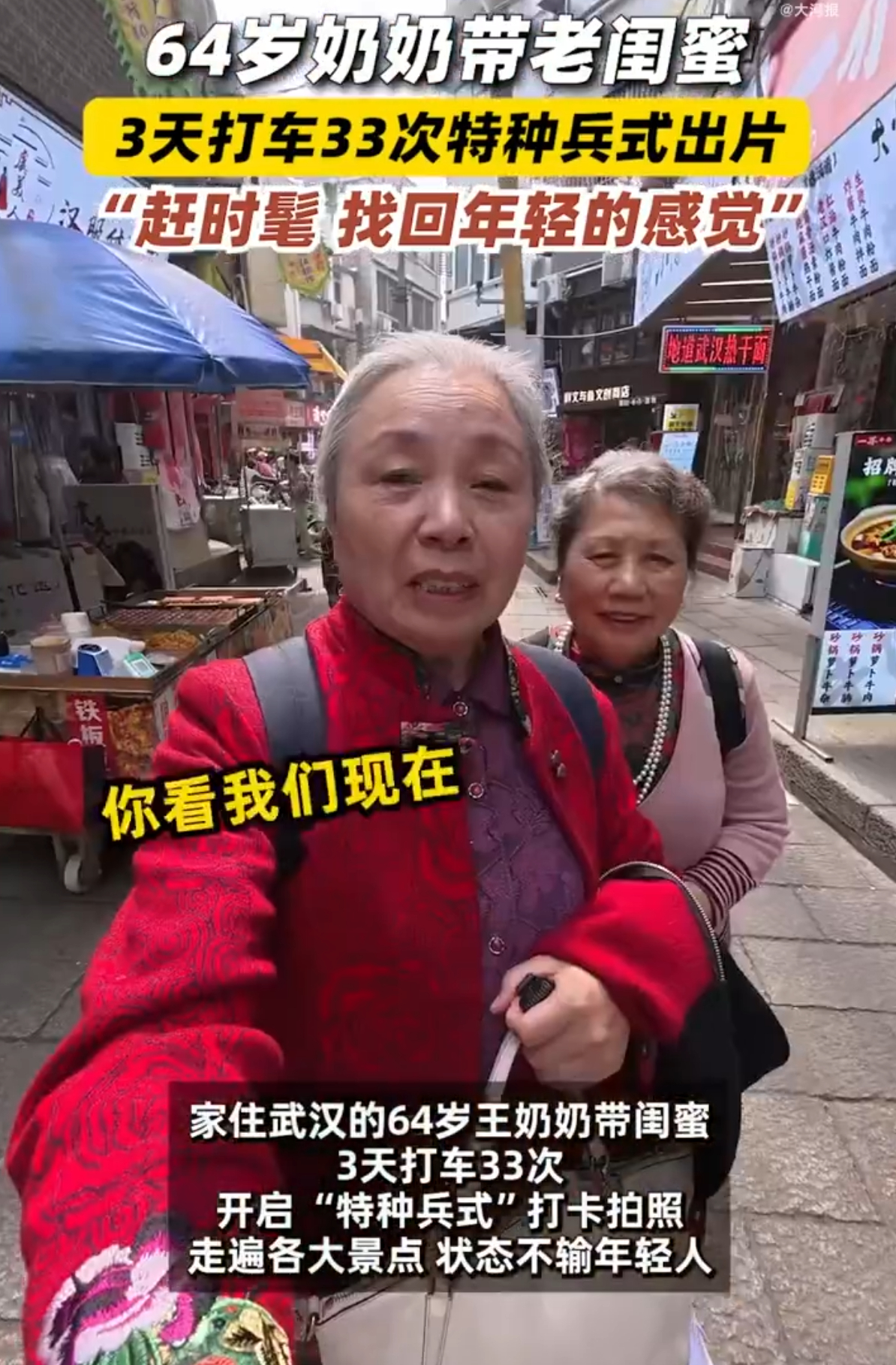 哈哈,超级羡慕这样的友情,即便是老了,依然活力无限,年轻人赶时髦的拍照打卡、享受美食乐趣等一一少不了,谁说特种兵出差只能是年轻人的。对此真的是实名羡慕,上了年纪还能有这样的友情,超幸福!闺蜜老了也要赶场出片老闺蜜3天打车33次特种兵出片