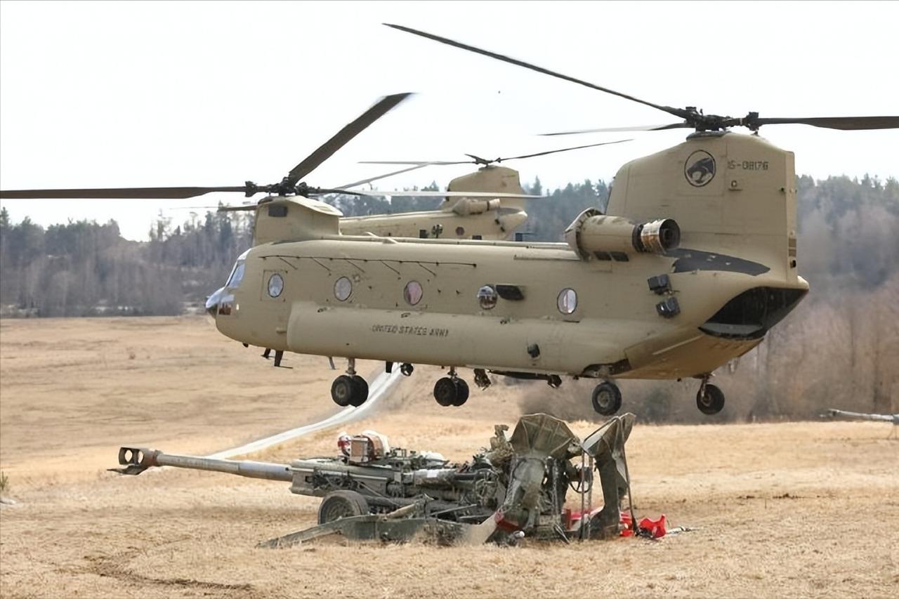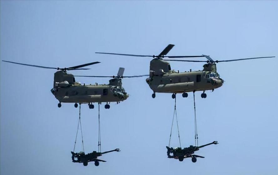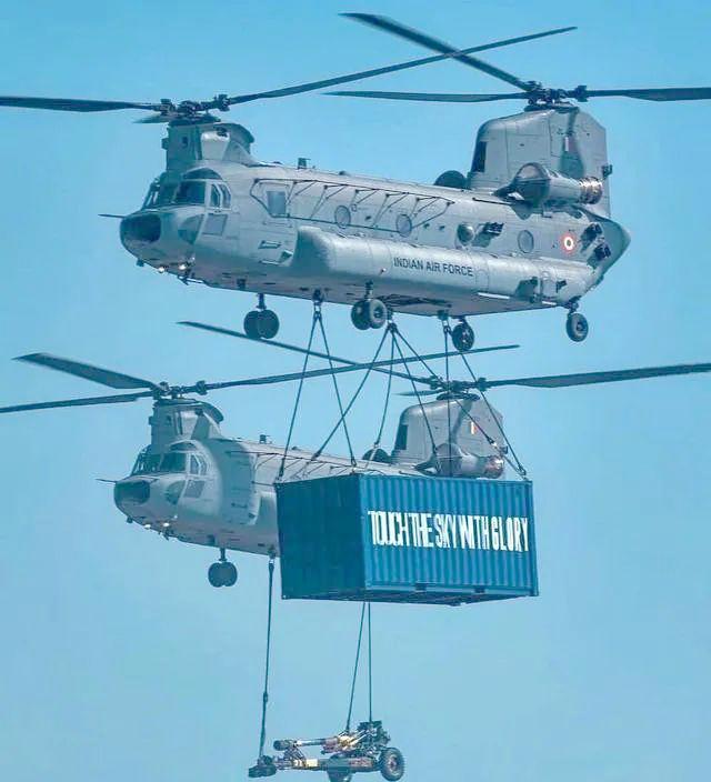 印度空军CH-47演练运送陆军的M777型155mm榴弹炮。 M777这种轻型火炮在旋翼机空运的情况下,能实现快速、远距离机动。 当然,想要发挥这种优点需要己方能够掌握牢靠的制空权和己方拥有规模较大的旋翼机部队。