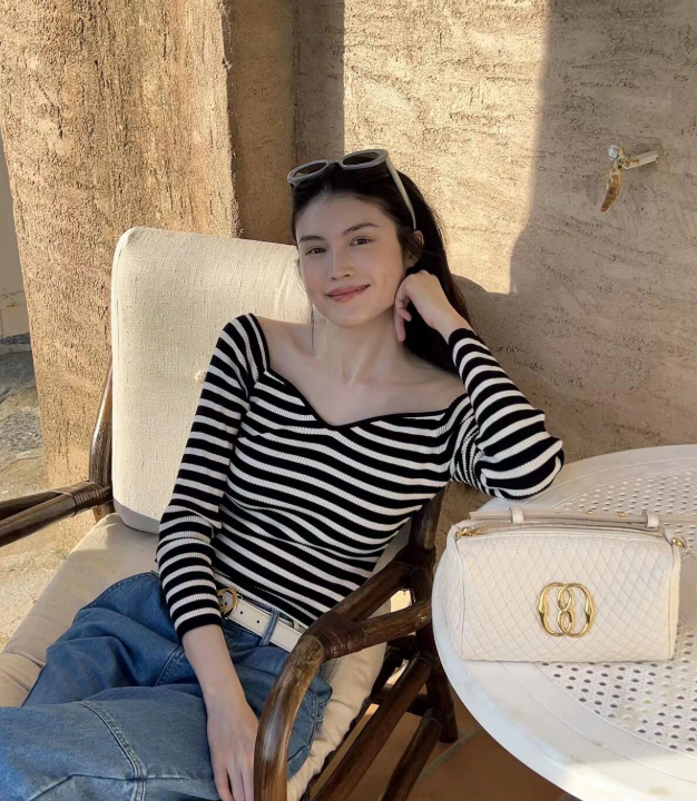何穗当妈后状态大回春 穿露肩条纹衫+牛仔裤,时髦又高级