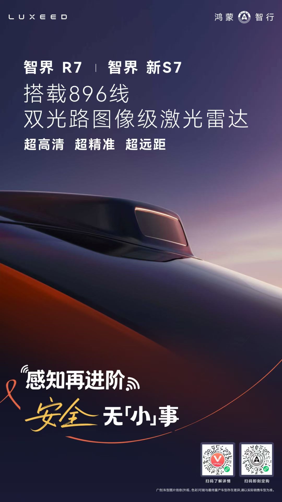 尚界Z7、尚界Z7T、问界M6,焕新的享界双9、智界双7、问界M8、问界M7,都将搭载全球首发量产最高896线双光路激光雷达。