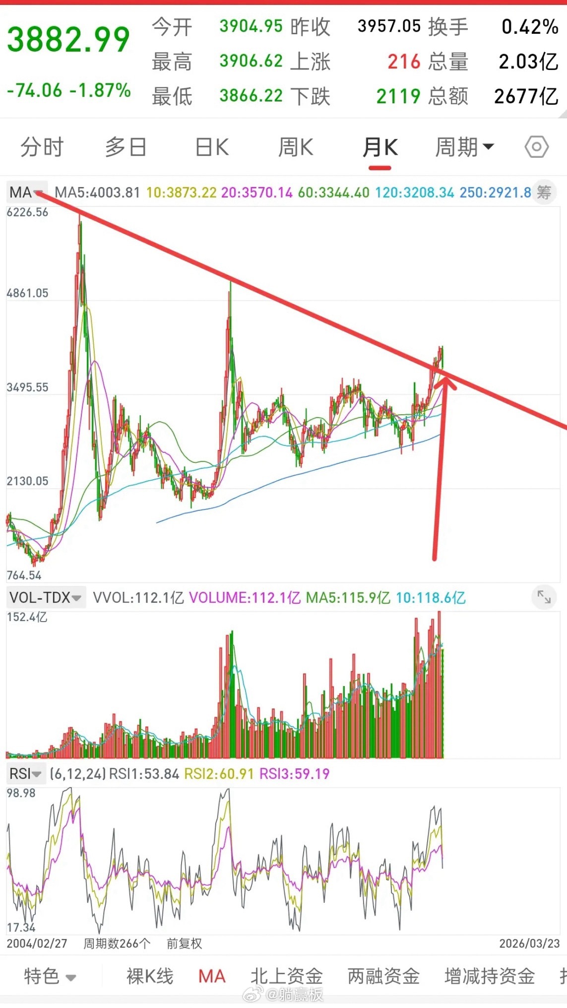 受外围因素影响,大盘大幅低开,截止目前最低点打到十月均线支撑位置,十月均线是3874,刚刚最低点3866。