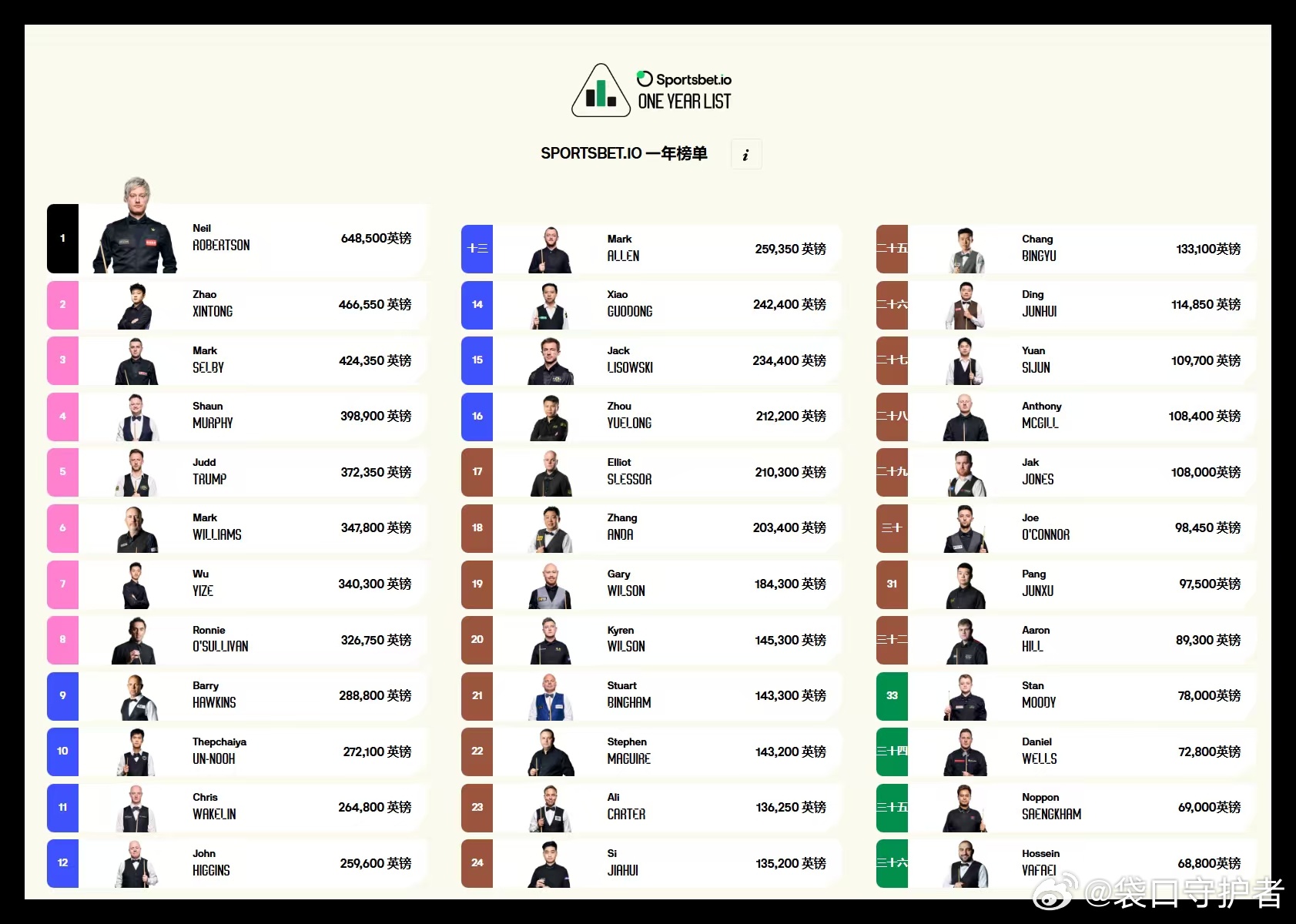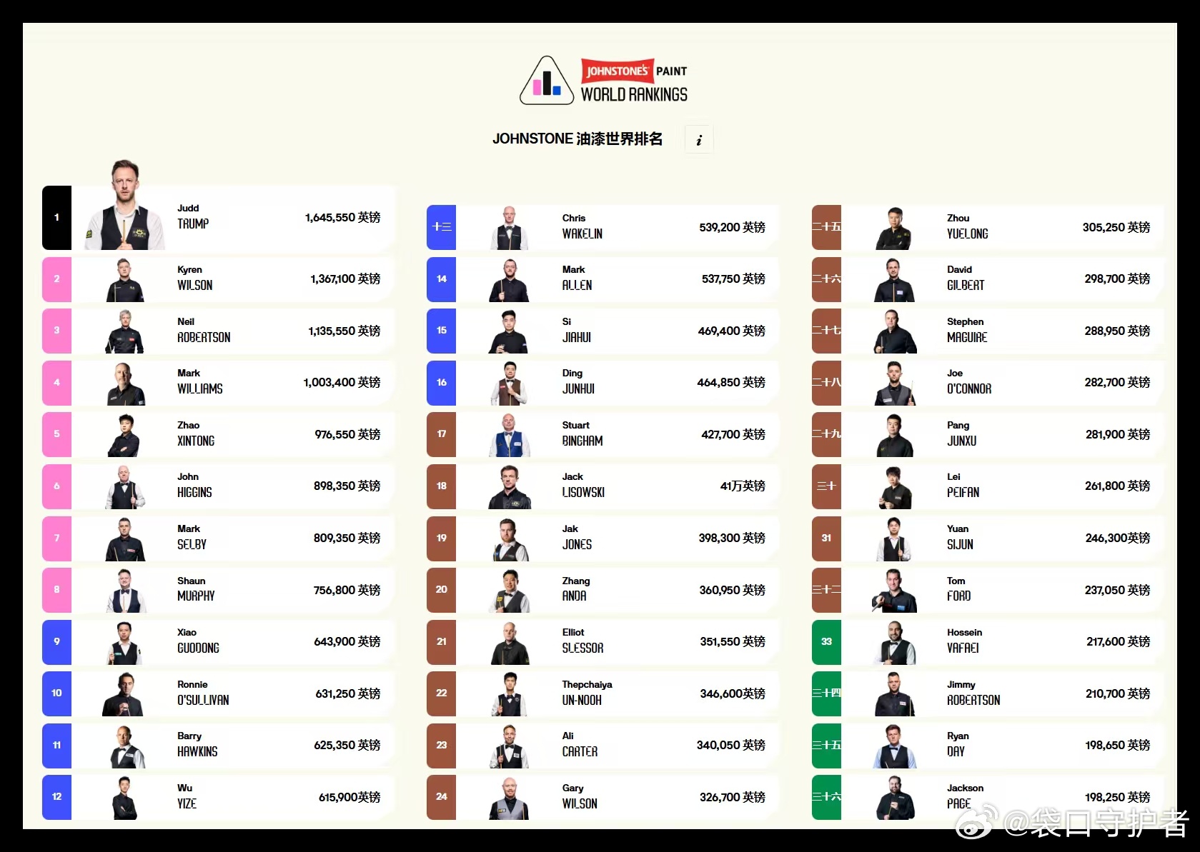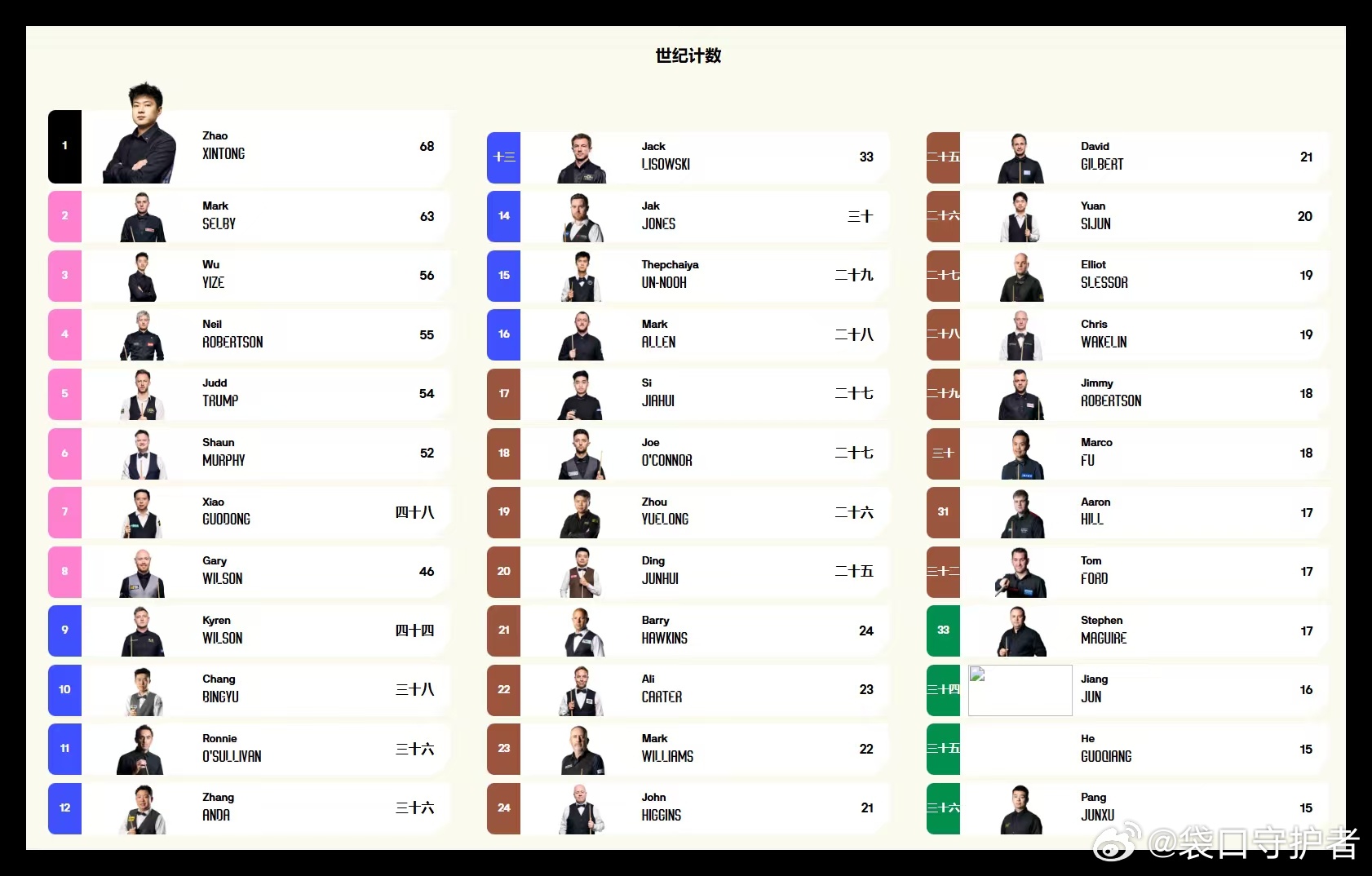 2025/26世界斯诺克巡回赛世界公开赛结束:世界最新排名,赛季最新排名,赛季单