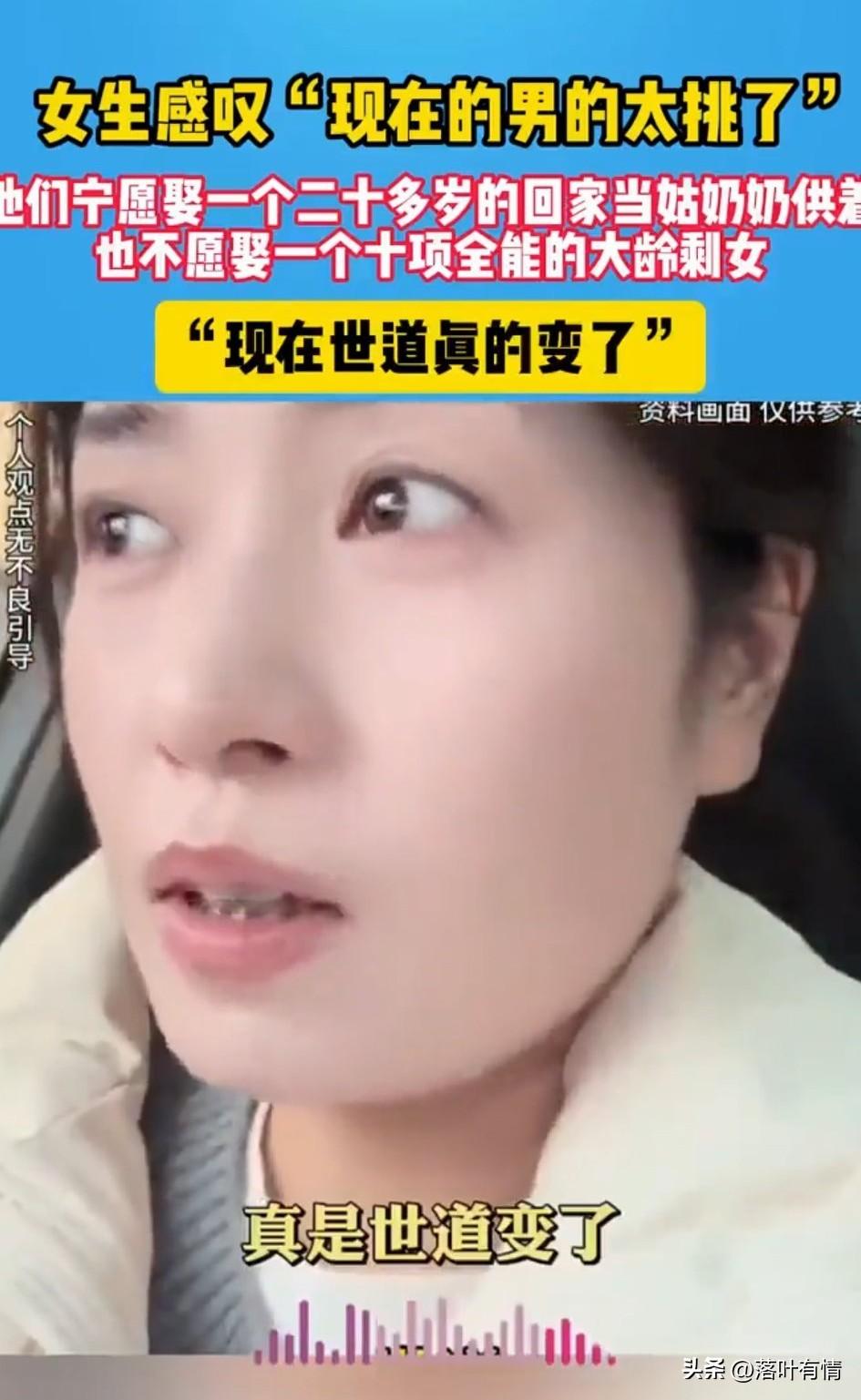 女生感叹现在男生真的太挑了, 她说自己会做饭, 可对方却说你太老了, 她说自己会开车, 会干家务活, 对方依旧说她年龄太大了, 女生说自己以后会非常的贤惠, 男生依旧说可是你岁数大的了, 这直接让女孩有些崩溃, 她年轻的时候是有些挑剔, 可如今作为大龄剩女的她, 已经幡然醒悟了, 并且主动把条件降低了, 但没有想到和她同龄男生却不接受她, 她说现在的男生宁愿找一个20岁的小姑娘,对方月薪3000, 男生也不介意, 就算20岁的小姑娘不会做饭, 不会做家务, 男生们依然会把她们供起来, 这简直非常的离谱, 为什么宁愿娶一个什么都不会的年轻女性也不愿娶一个10项全能的大龄剩女, 现在的世道真的变了! 年龄成为了女性不可跨越的鸿沟, 大家觉得这个女孩说的对吗? 相亲交友 大龄剩女