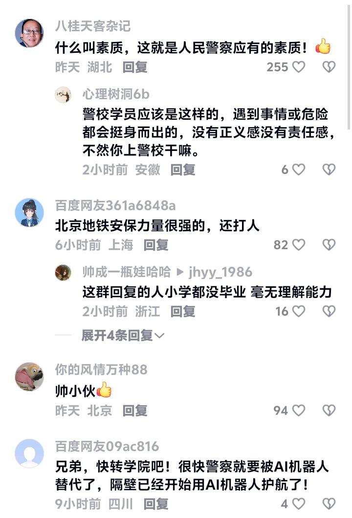 北京地铁房山线东管头南站惊现热血一幕!21岁预备警官一声怒吼震慑施暴者,教科书式操作引全网怒赞:这才是中国青年的脊梁! 当拳头即将落下的瞬间,一个身影逆着人流冲上前。那句“住手,我是公安大学的!”如同惊雷炸响在嘈杂站台。这不是电影片段,而是发生在北京地铁房山线东管头南站的真实故事。 耿飞桐,中国人民公安大学一名普通学警,用行动诠释了什么叫“预备警官”的责任。面对激烈冲突,他没有丝毫犹豫,用身体筑起一道安全防线。那一刻,他忘记了自己只是学生,只记得肩头沉甸甸的使命。 没有执法权怎么办?他巧妙转化课堂所学。控制手臂、物理隔离、讲解法规,每一步都冷静克制。这不是莽撞逞能,而是专业素养的自然流露。他说这只是预备警官该做的事,却让无数人看到年轻一代的担当。 军人家庭出身的他,把责任刻进了骨子里。父亲那句“责任心是人格的脊梁”,早已化作他挺身而出的本能。即便面对未知危险,他依然选择逆行,这份勇气在平安年代显得如此珍贵。 网友的点赞潮水般涌来。有人说这是人民警察应有的素质,有人感叹正义感从来与年龄无关。当越来越多人选择冷漠围观时,这样的热血青年就像一束光,刺穿了都市丛林的事不关己。 地铁监控记录的画面里,他站在施暴者与受害者之间的姿态,仿佛一座界碑。界碑这边是失控的暴力,那边是受保护的公民。这道用血肉之躯划出的界线,比任何标语都更有力量。 从课堂理论到实战检验,耿飞桐完成了预备警官的首次“毕业考”。那句转化后的警告语,既恪守法律边界,又彰显警察威严。在规则与道义之间,他找到了最漂亮的平衡点。 表扬信送到学校时,这个年轻人只是腼腆一笑。但千千万万普通人记住了那张青春面孔。在需要英雄的时代,他选择成为平凡守护者。而这恰恰是最动人的英雄主义——无需披风,正义已在心中。 (来源:根据央视新闻及网络公开信息整理) 正能量青年 社会担当