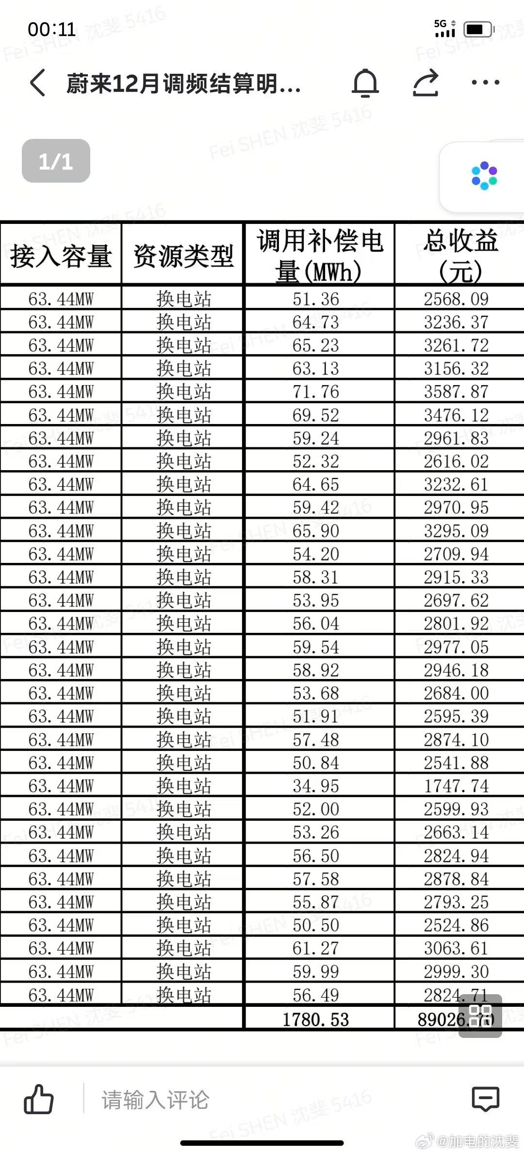 给你看看,这是换电站参与电网调峰的收益。