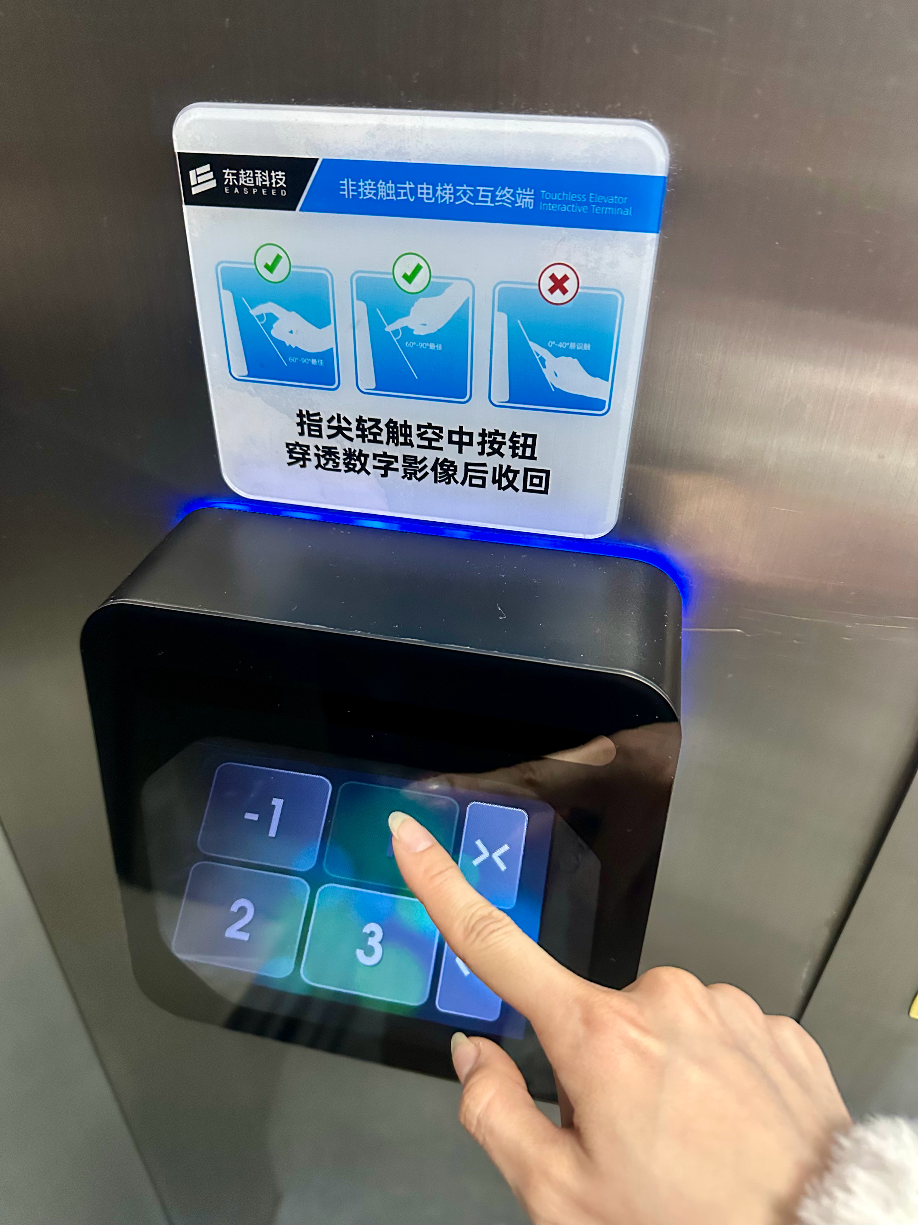 真是科技改变生活 电梯都有悬浮无接触按键了