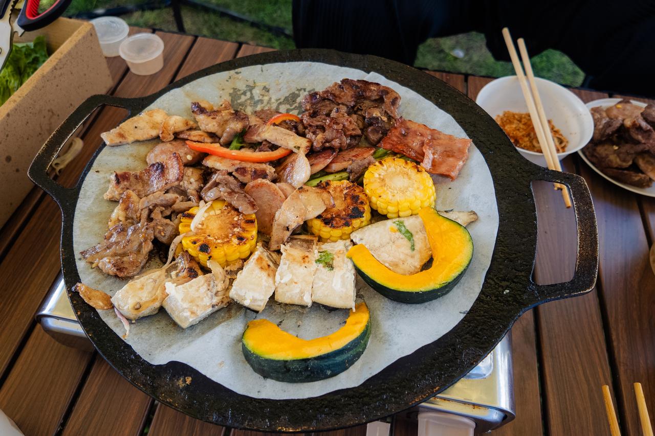 驾驶马自达EZ-60到达第二站,从厦门来到漳州双鱼岛的海野营地用餐,在海边享用自助烧烤,幸亏带媳妇来了,火候掌握的特别好,又美美吃了一顿。 有特制的饮品,提供各种水果小食,烧烤种类也非常丰富,只是户外有点热,又是吃烧烤。虽然是在海边,这顿饭也是吃得满头大汗。 吃完饭,在进入海岛的大桥旁,和马自达EZ-60拍照打卡,当天的天气非常给力。