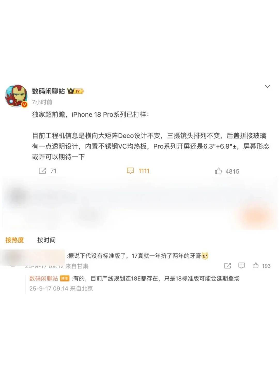 这给我干哪年来了?我的iPhone 17还没收到手,iPhone 18 Pro 上热搜了 今天刷大眼