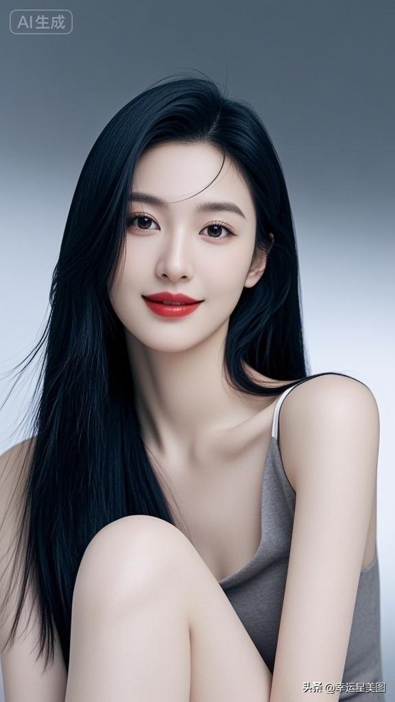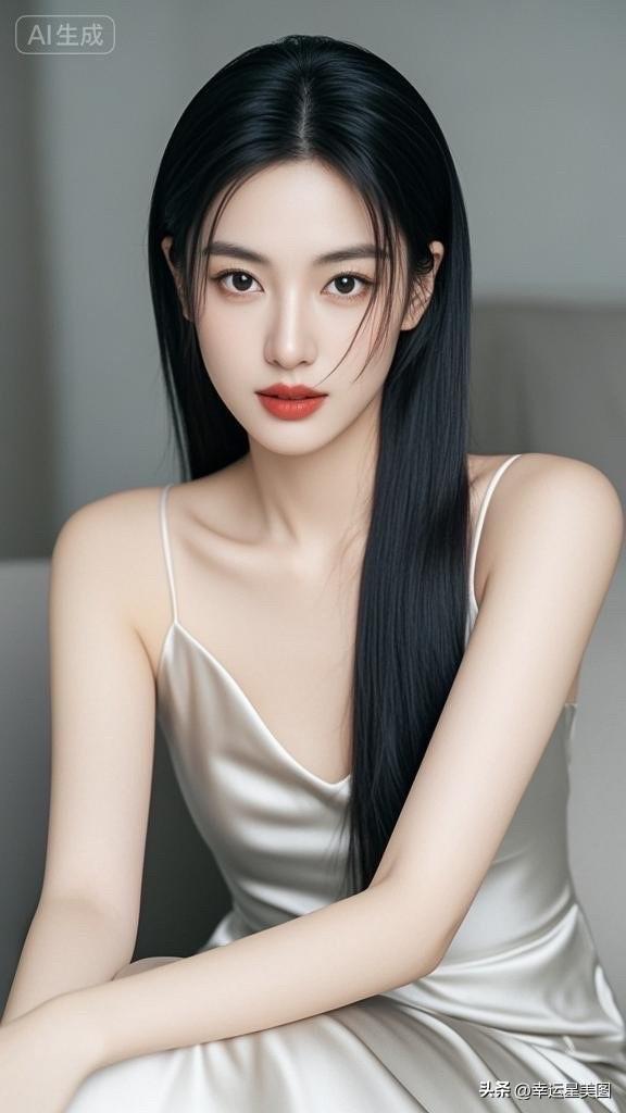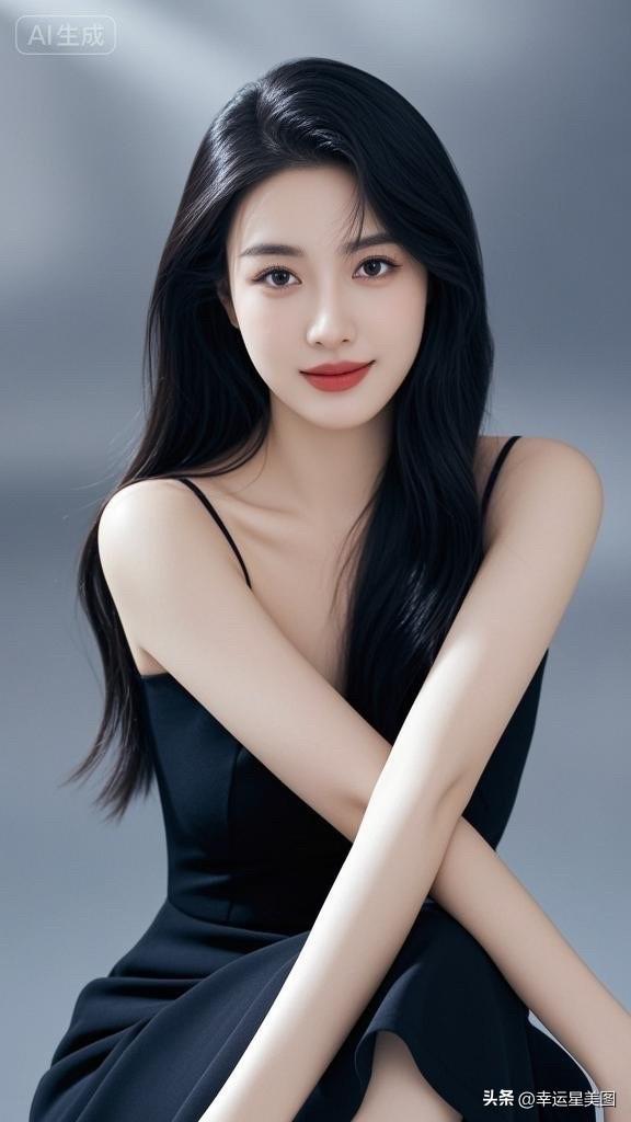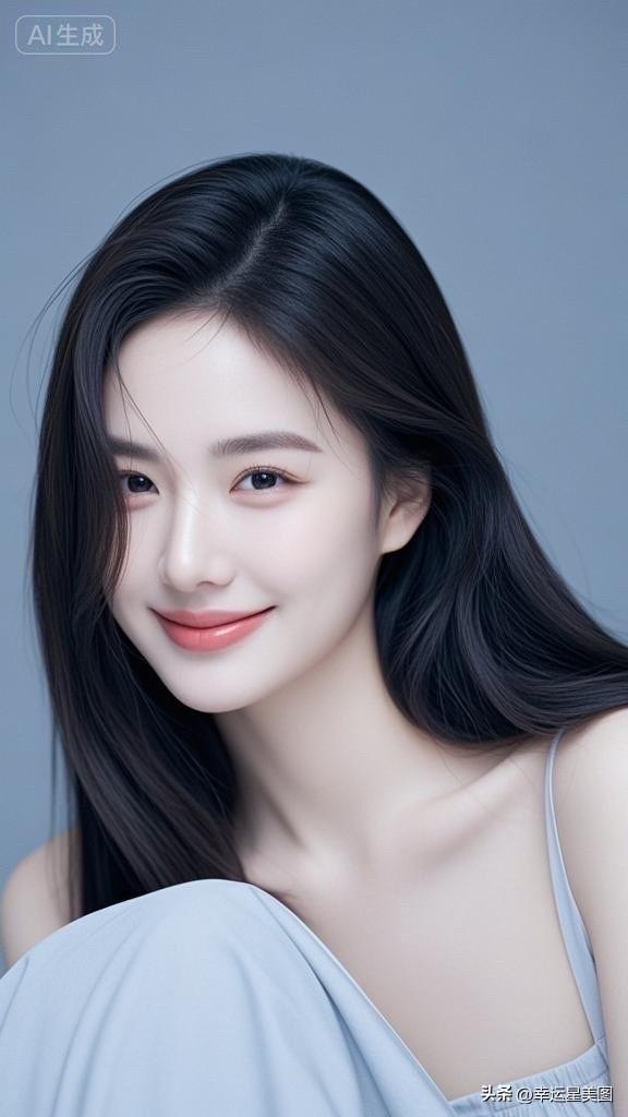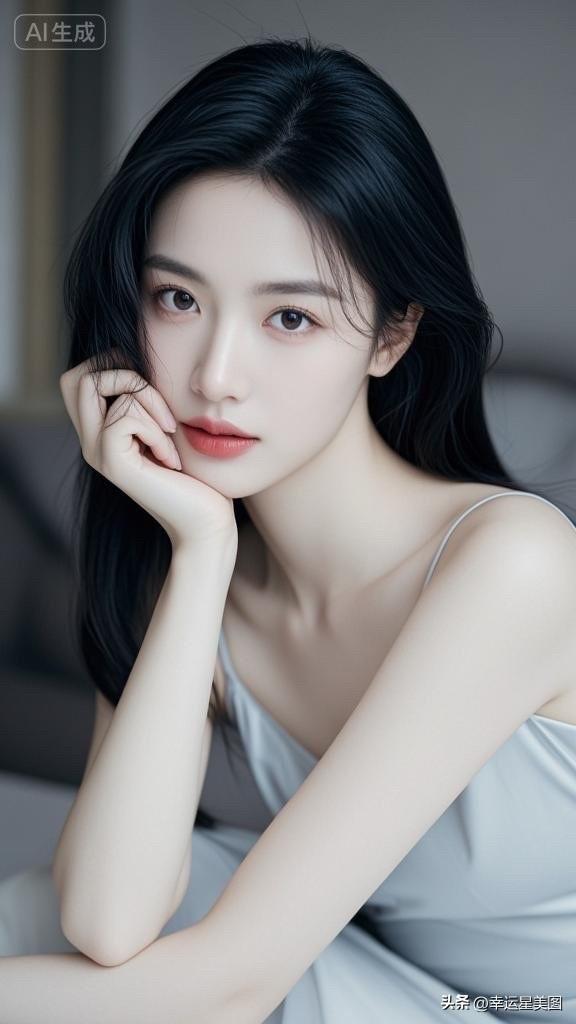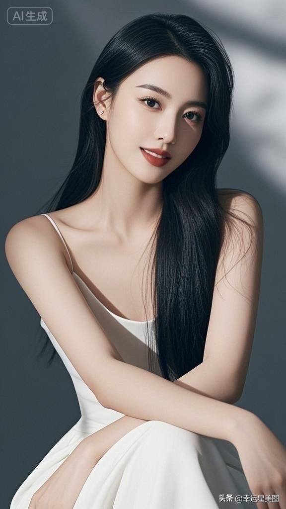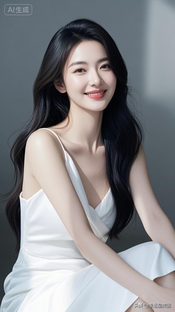 温柔黑发,甜美笑容,优雅白裙,气质动人