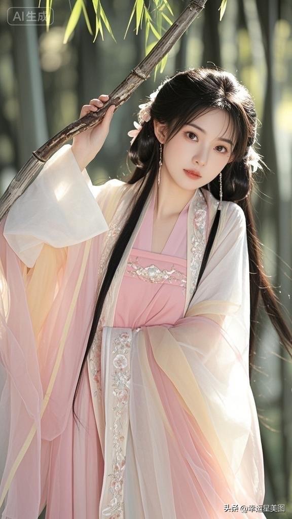 “穿越时空的少女,粉色的梦与竹林的轻语”🌸🍃