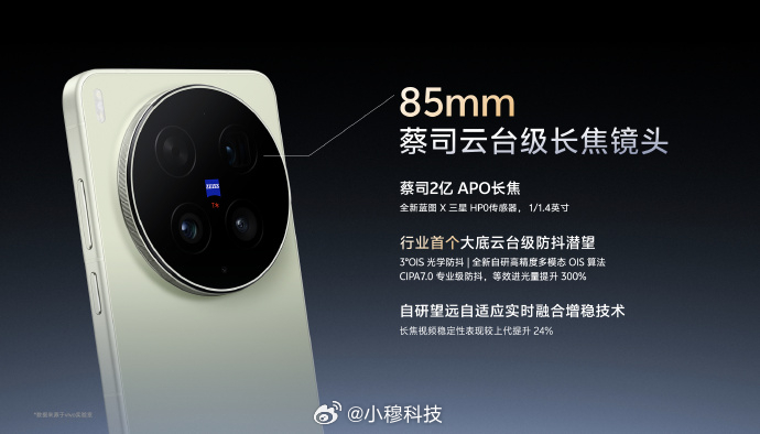 长焦——HP0 200Mp 1/1.4" 85mm焦段 F2.67 3°OIS CIPA 7.0防抖