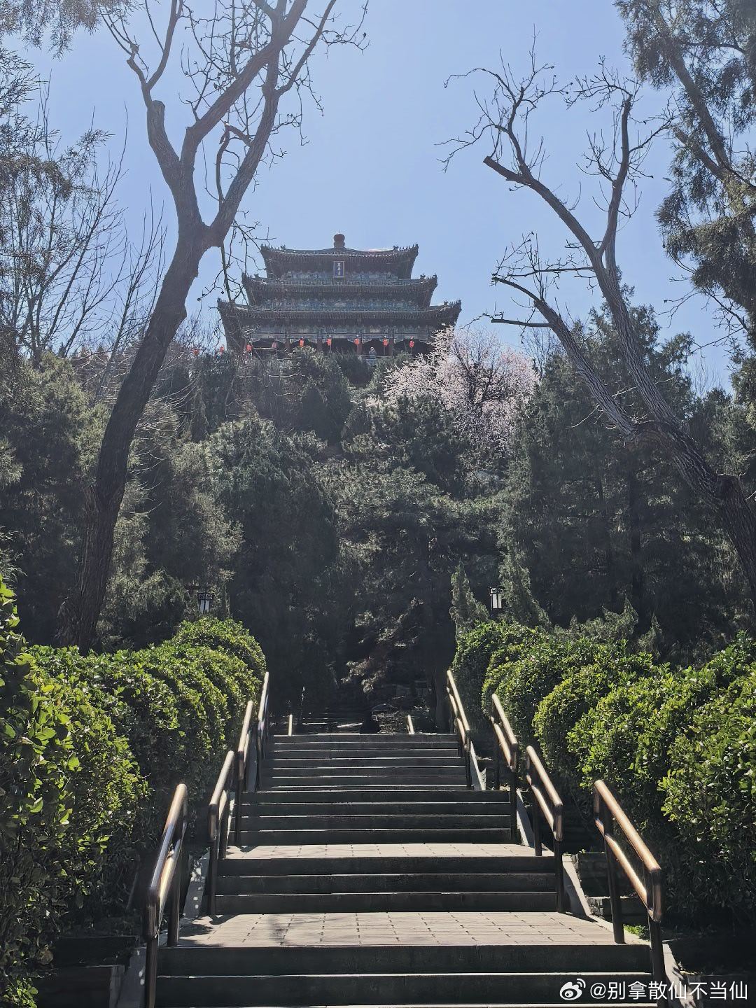 北京春色之景山公园,诗家清景在新春,绿柳才黄半未匀。若待上林花似锦,出门俱是看花人。 公园里春花大多没开放,只有迎春花、山桃花,游人不多。再有半个月海棠、牡丹会次第开放 …… 摄影北京春色正好