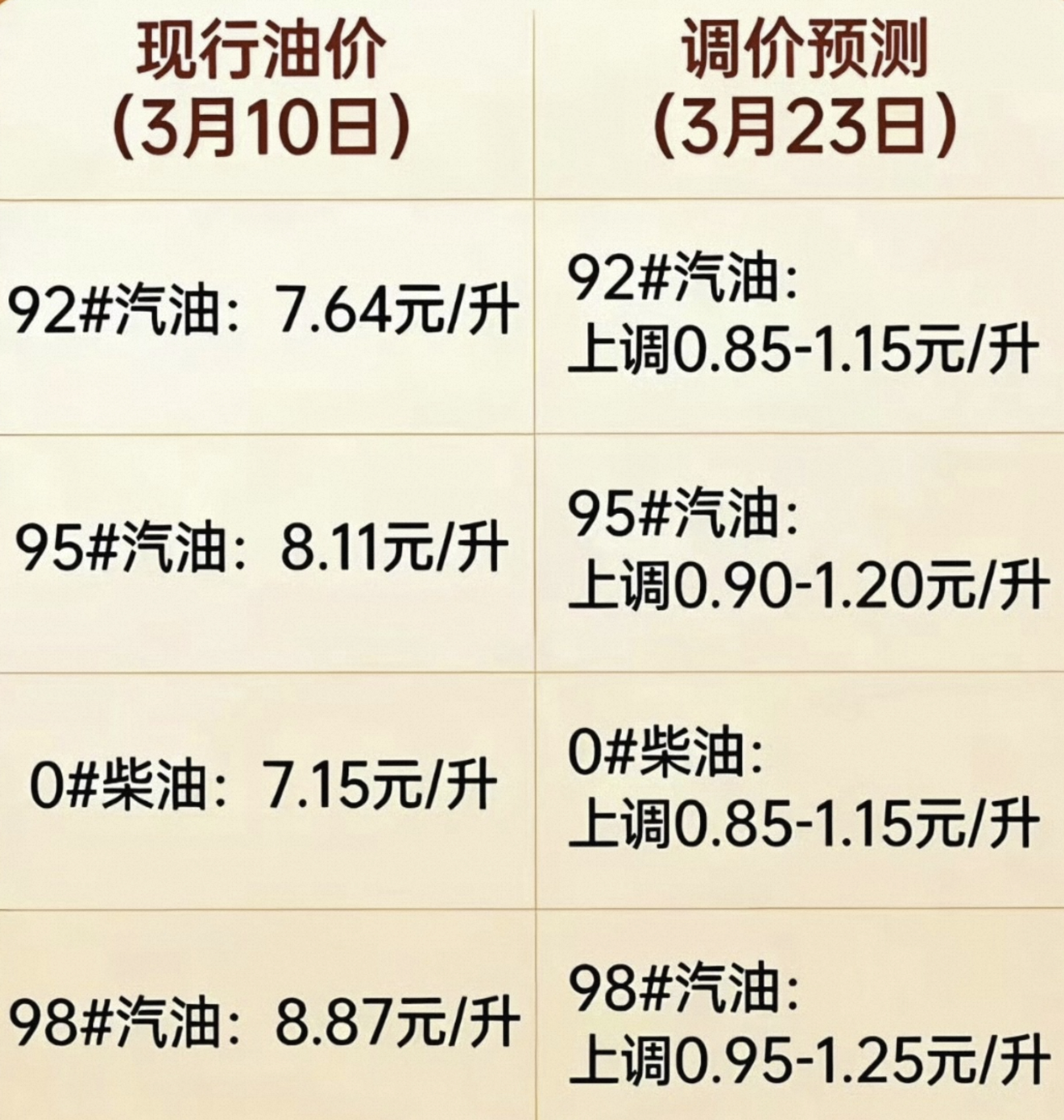 今晚调整油价 可能是涨幅最大的一次?看到好多人抢着去加油,我两辆车用着5毛钱一度的电费,不用去凑热闹的感觉真好,省钱又省时。前几天碰到一个前同事,还在开燃油车,我说你都住别墅了,家里能安充电桩,不开电车真是浪费,你就算油钱无所谓,你想想你到家插枪方便,还是绕路去加油站方便?增程车日常用电方便,出远门用油不焦虑,他终于有点心动了。
