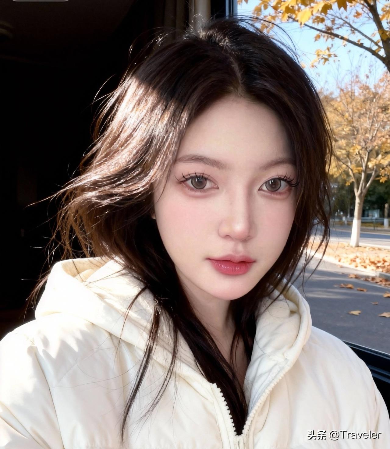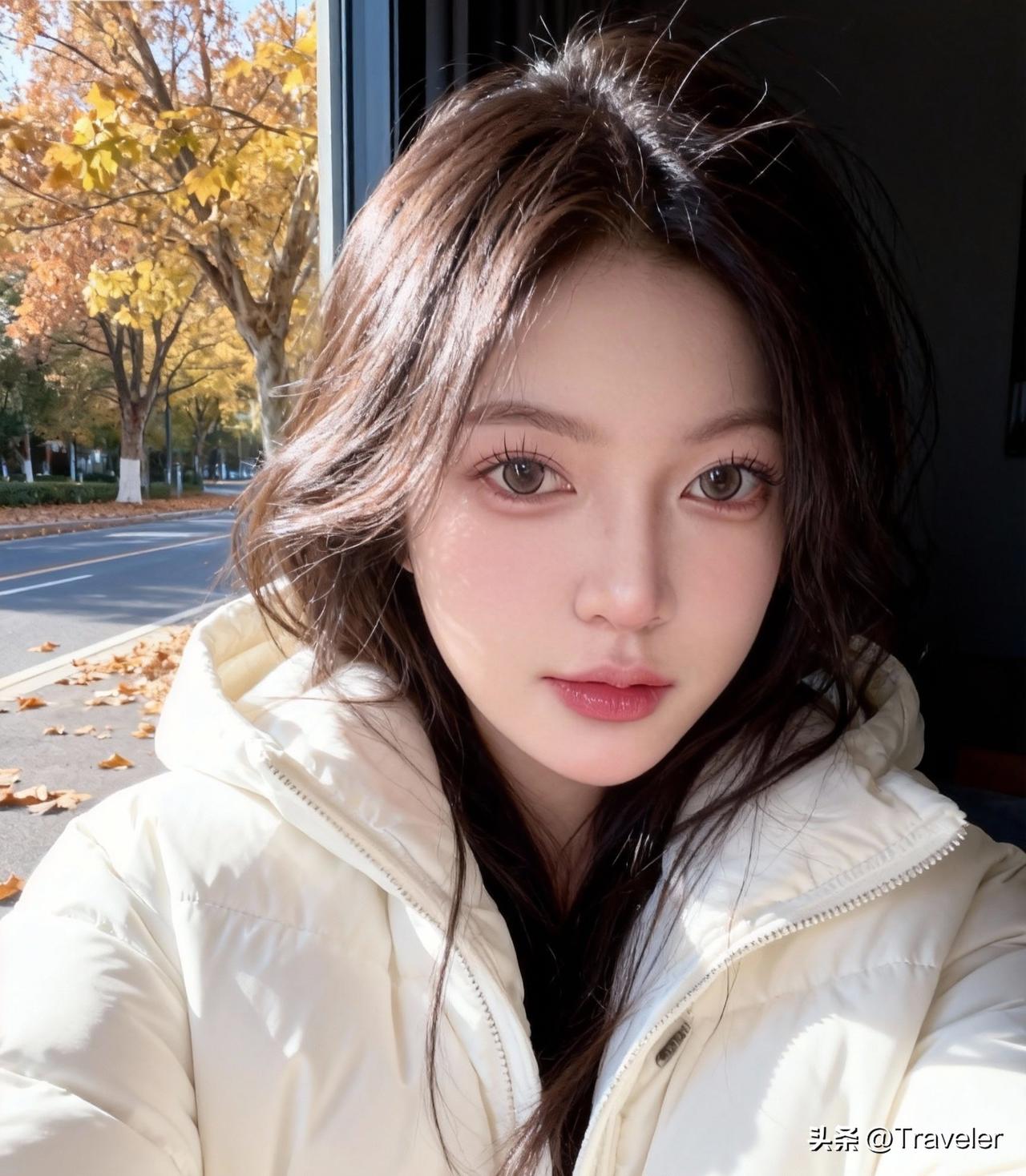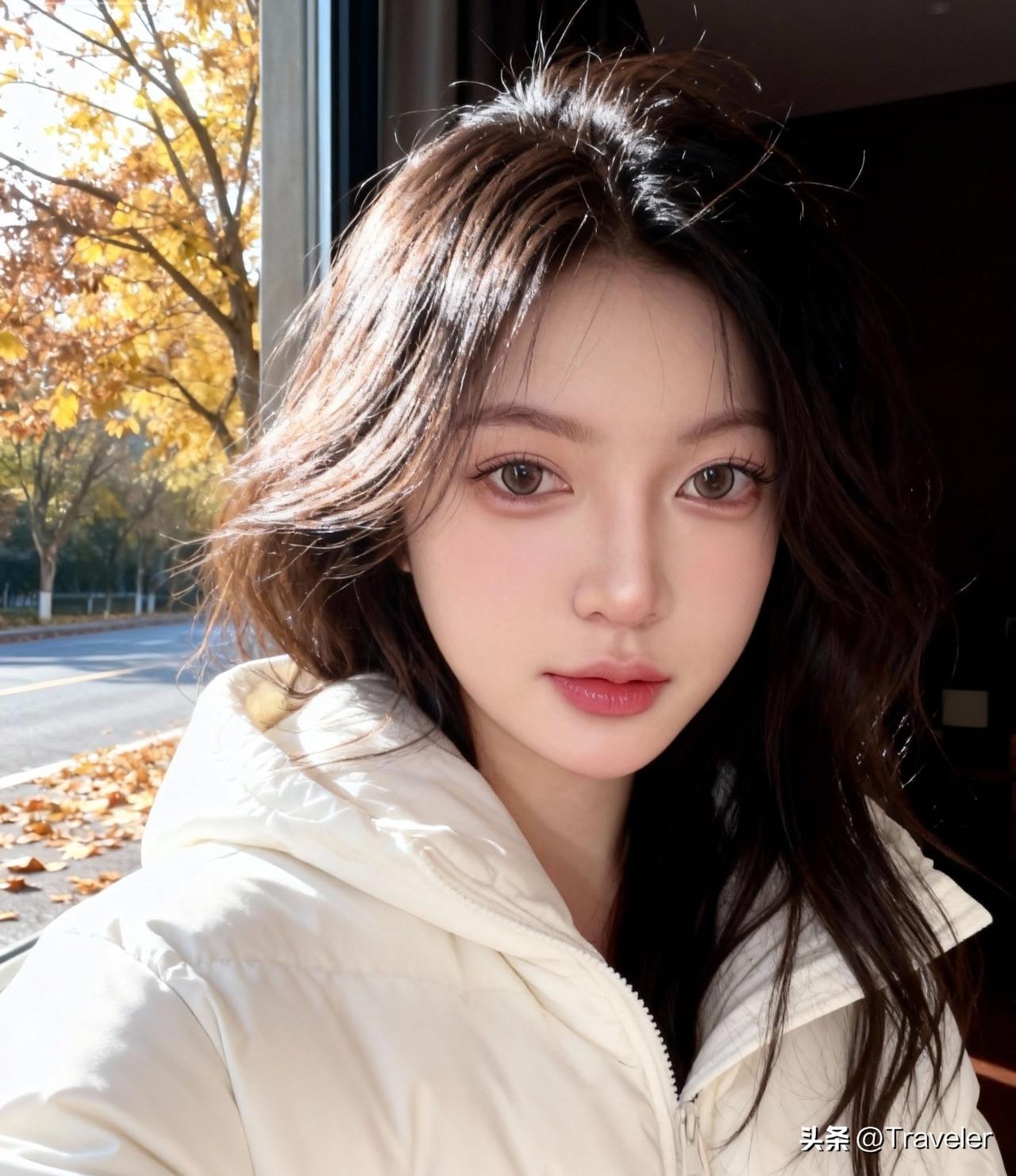 秋日暖阳下的少女,温柔如水,岁月静好。