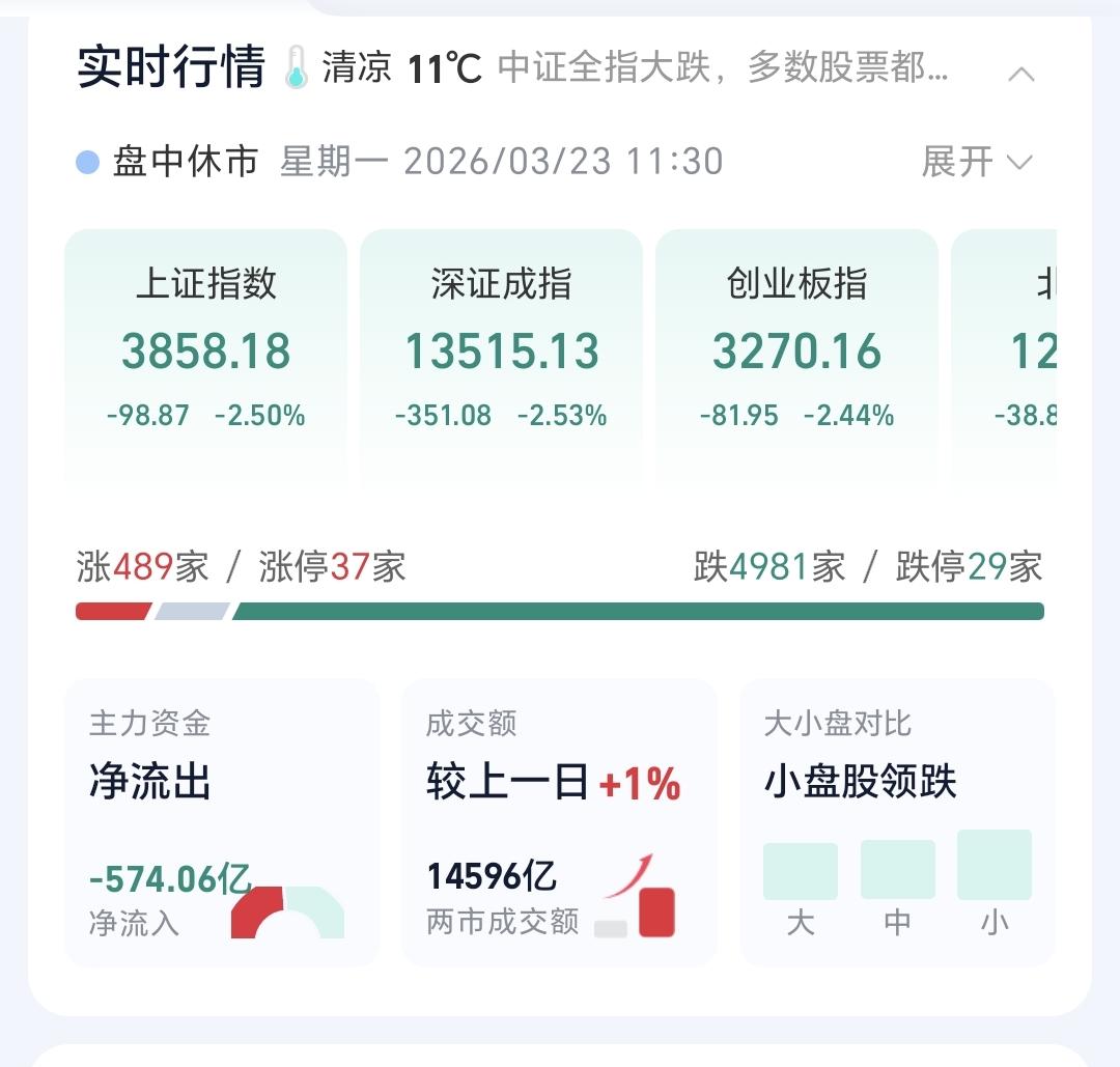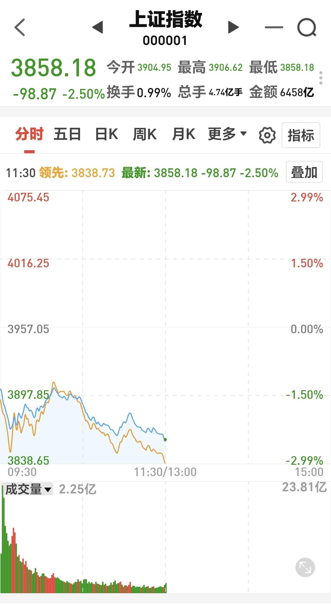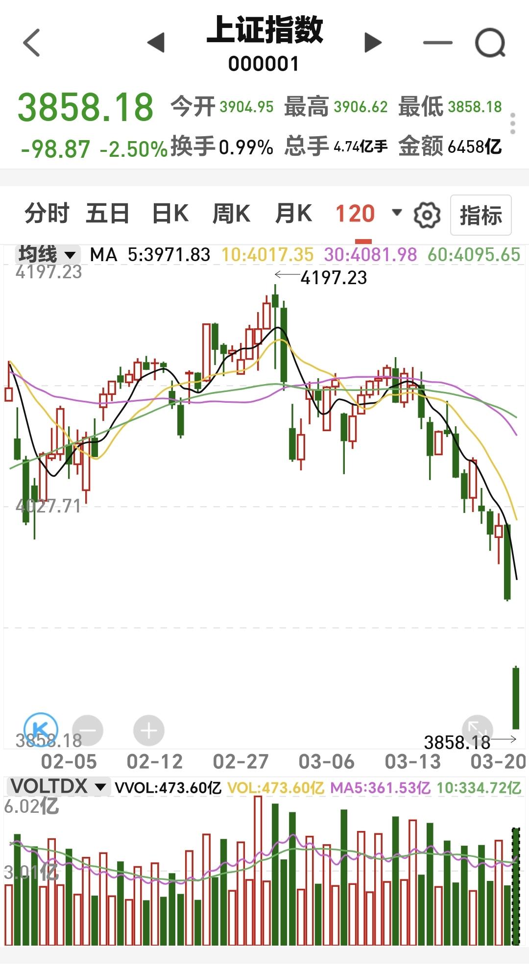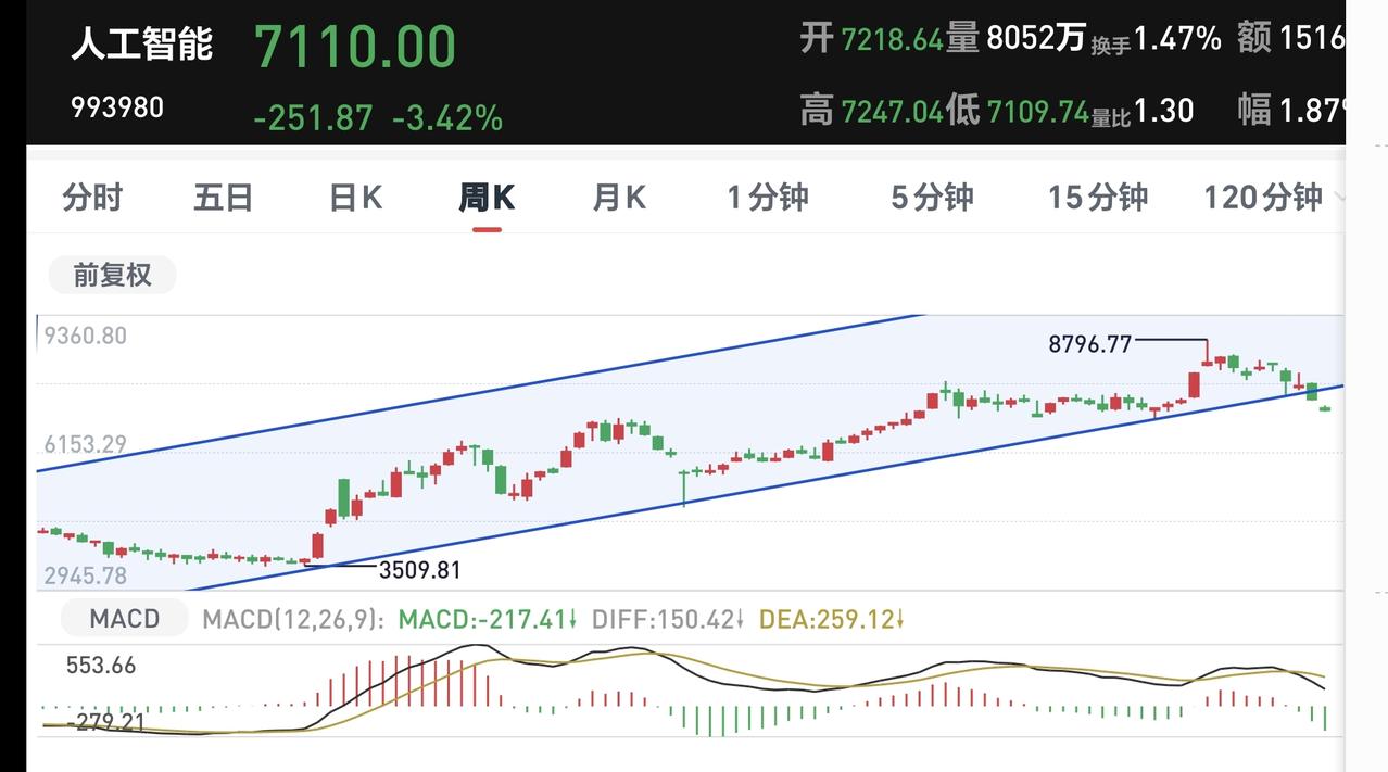 基金:市场有没有见底 今天市场低开以后小幅度冲高,然后是继续回落杀跌,中午收盘的时候三大指数都是大跌,下跌幅度都在2%以上,创业板指下跌了2.44%,收于3270点,上证指数下跌了2.50%,收于3858点。 整个股票市场,上涨489家,下跌4981家,涨停37家,跌停29家,上涨家数少于下跌家数。 持有的基金中,中午收盘的时候,估值盈利的只有新能源汽车板块,估值亏损金额最大的三个板块是:创新药板块,证券板块,芯片半导体板块,估值整体亏损了20363元。 整个基金市场,上涨4693家,下跌14951家,没有上涨幅度超过5%的基金,下跌幅度超过5%的100家。 图10是今天板块的上涨排行榜,上涨幅度最大的三个板块是:煤炭板块,锂矿板块,债基板块,图11是今天板块的下跌排行榜,下跌幅度最大的三个板块是:黄金板块,农林牧渔板块,交通运输板块,图12是今天基金的加仓和减仓人数,加仓815373人,减仓1038427人,加仓人数少于减仓人数。 整个市场主力资金净流入最多的三个板块是:汽车板块,煤炭板块,智能汽车板块,主力资金净流出最多的三个板块是:高端制造板块,电子板块,esg板块。 1:中午收盘的时候,黄色线在蓝色线下方带两条线之间的场合,并不是特别大,下午继续观察两条线位置之间会不会有变化。 2:两市累计成交14956亿,相比于上周五同期放量了1%,上午开盘以后,有一波恐慌盘涌出,但在反弹的过程当中,并没有资金进场,第二轮的杀跌并没有见到恐慌盘。 没有杀出恐慌盘的情况之下,有两种可能性,一种是继续杀跌,直到杀出恐慌盘为止,第二种是上拉诱多,诱骗资金进场以后再进行杀跌,具体会用哪一种方式,现在还不知道,需要继续观察。 3:商业航天板块中午收盘的时候估值下跌了1.36%,是连续第三个交易日下跌,持有人数在所有板块当中排名第六位。 商业航天板块日线级别处于下跌通道中,上周五下跌跌破了日线级别下跌通道的下轨线,今天是继续下跌,进入了加速下跌状态,刚进场的人需要耐心等待。 商业航天板块周线级别处于上涨通道中,今天的下跌并没有跌破这个周线级别上涨通道的下轨线,但现在的位置距离这条下轨线比较近,近期观察会不会有效破位这条下轨线,如果有效破位周线级别上涨通道的下轨线,长线持有的人需要注意风险。 4:人工智能板块现在盘中估值下跌了3.17%,是连续第三个交易日下跌,持有人数在所有板块当中排名第11位。 人工智能板块日线级别处于下跌通道中,今天下跌跌破了这个下跌通道的下轨线,如果是有效破位这条下轨线,就进入了加速下跌走势。 人工智能板块上周下跌跌破了周线级别上涨通道的下轨线,今天是继续下跌,人工智能板块周线级别上涨趋势有可能已经被改变,长线持有的人需要注意风险。 到现在为止还没有看到市场止跌的迹象,也就是左侧的交易信号还没有出现,更没有谈右侧交易信号了,什么是左侧交易和右侧交易,见上一篇文章。 如果市场采用拉涨诱多的方式,在上涨的过程当中还是需要观察有没有成交量的有效放大,请注意,是要观察成交量的有效放大,而不是成交量的放大,没有有效放大的成交量是没有用的,总体上看,这么快的下跌速度不容易很快停下来,即使有反弹,反弹结束以后大概率还是会继续下跌,反弹最快下午就会到来,也就是市场还没有真正的见底。 我会密切注意市场走势,有观点以后会第一时间分享给大家,大家帮忙评论点赞,转发和分享。