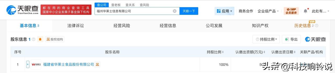 【华莱士成立信息服务公司 注册资本5000万】 天眼查工商信息显示,近日,福州华莱士信息有限公司成立,法定代表人为华鹏程,注册资本5000万人民币,经营范围为社会经济咨询服务、企业管理咨询、企业管理、供应链管理服务。股东信息显示,该公司由福建省华莱士食品股份有限公司全资持股。 天眼查信息: