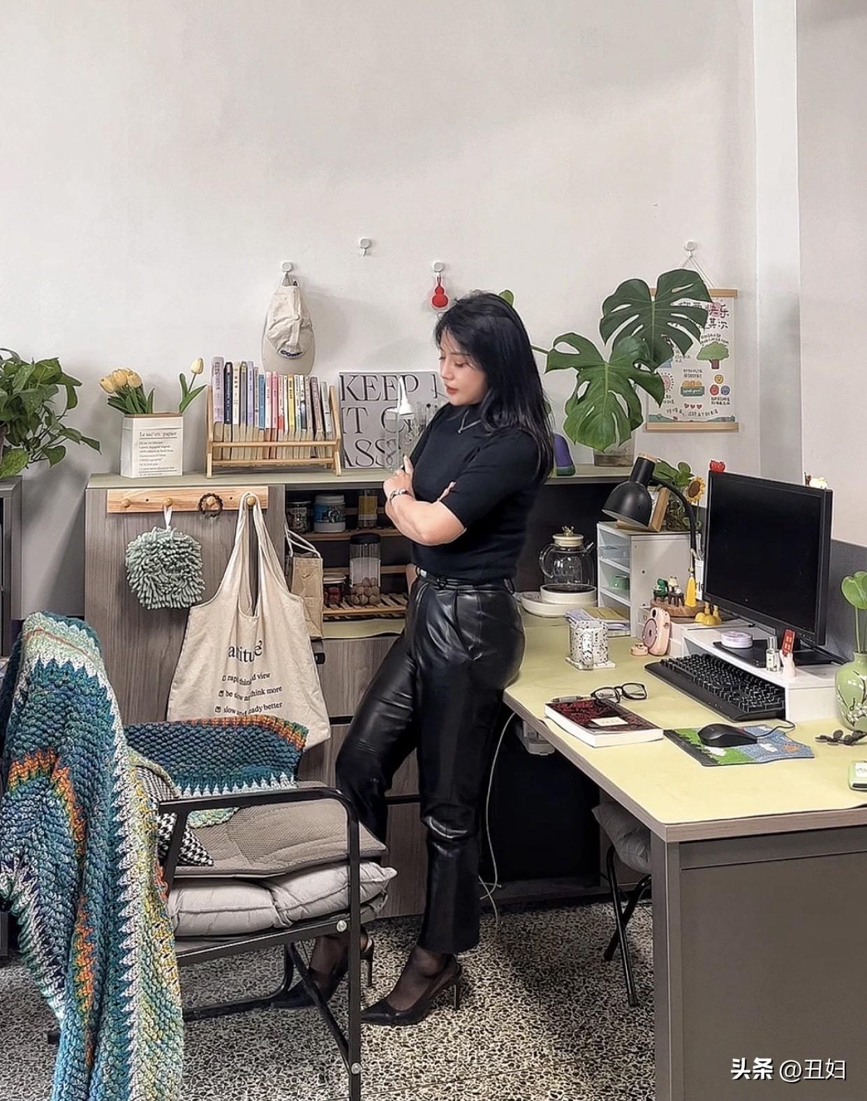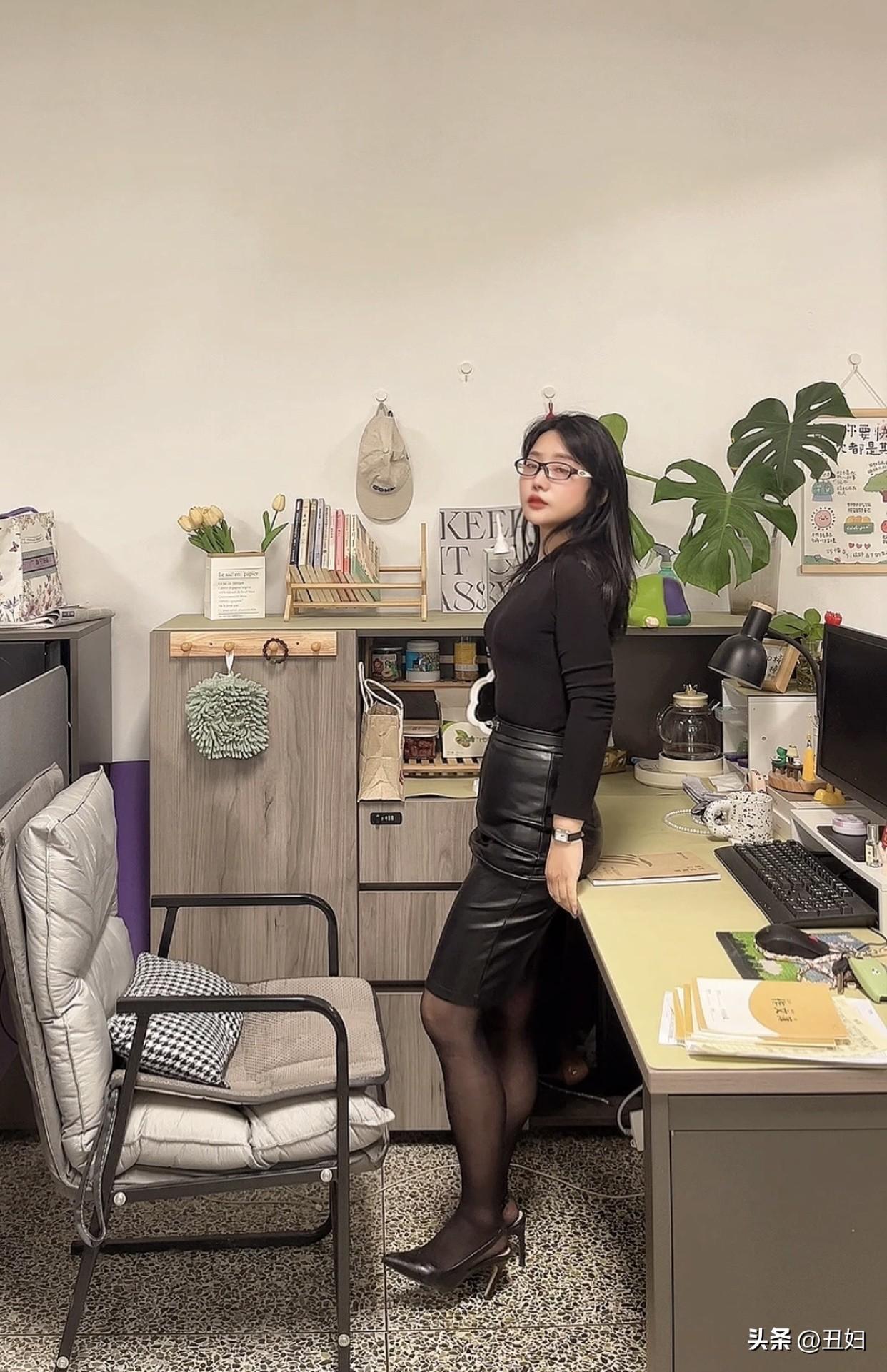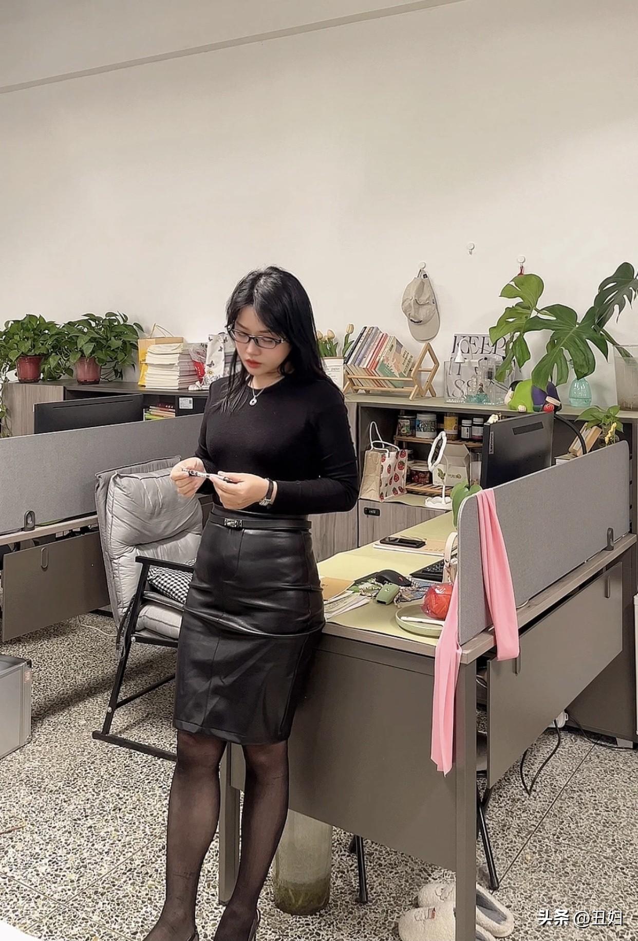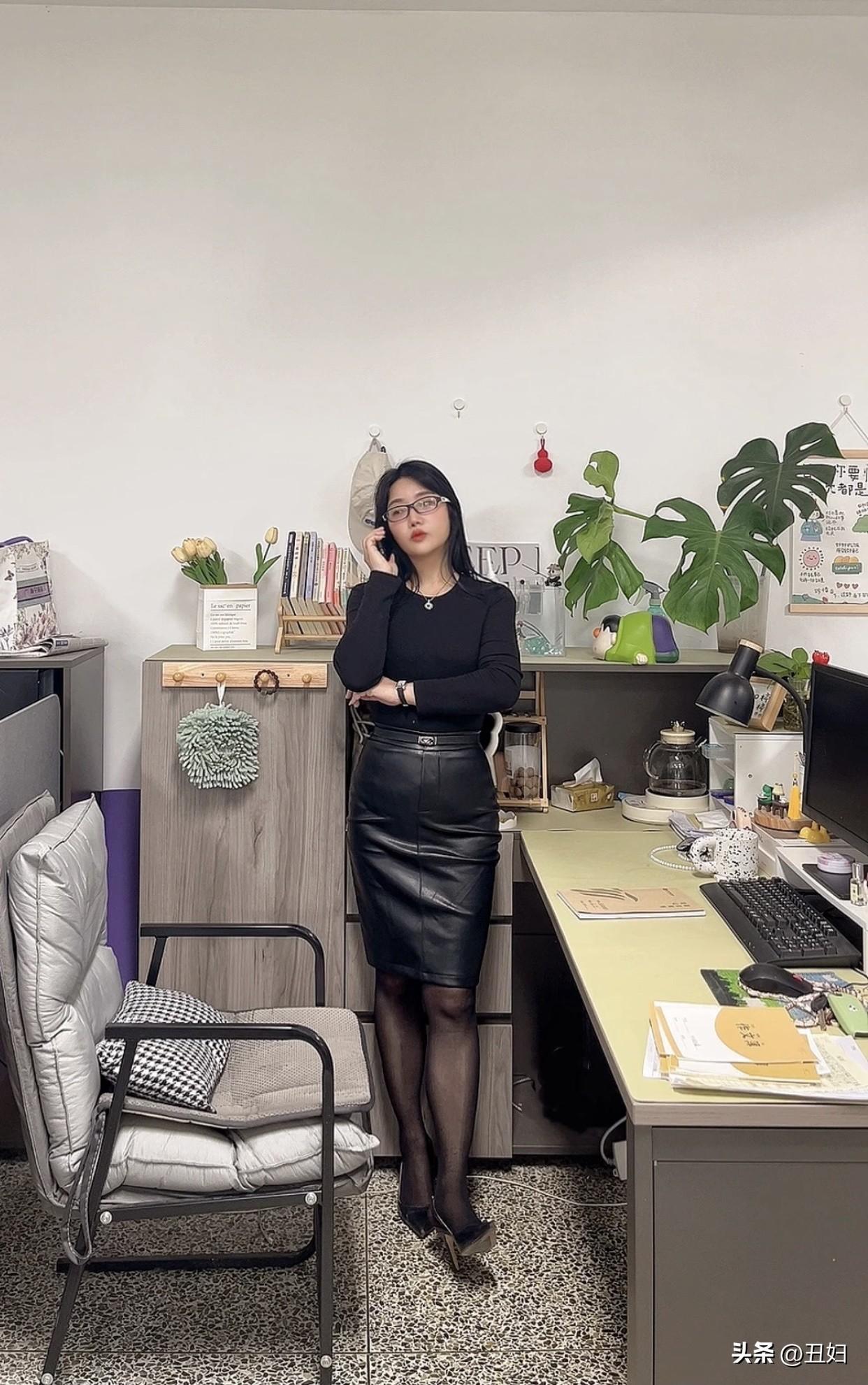 晒出美丽身影黑色皮裙搭高跟鞋,优雅神秘感十足!